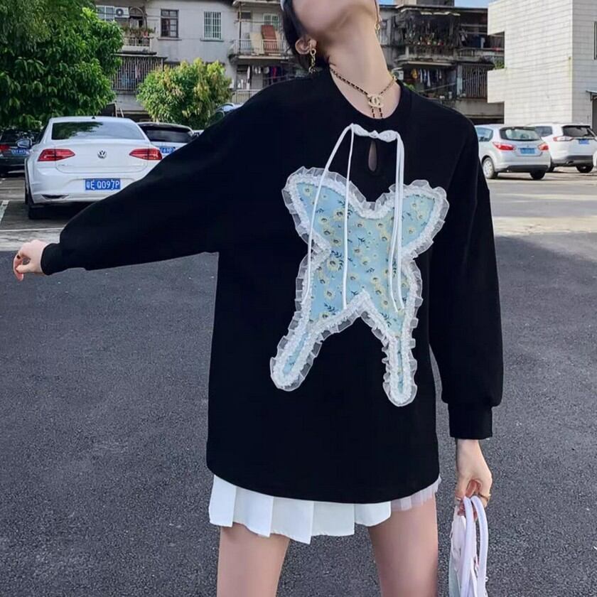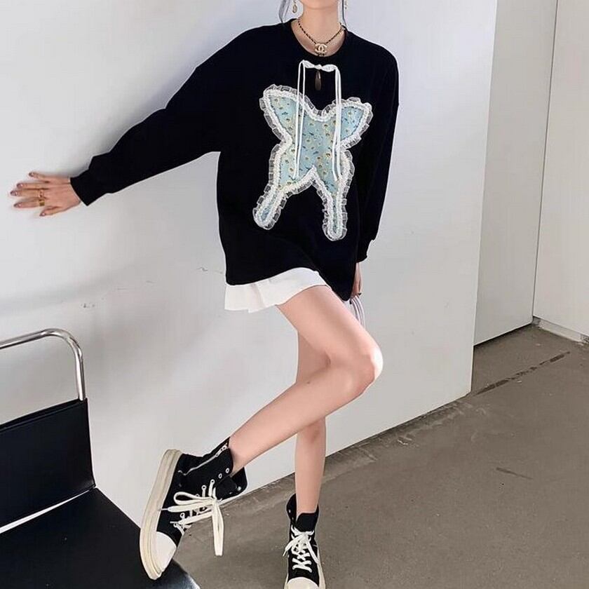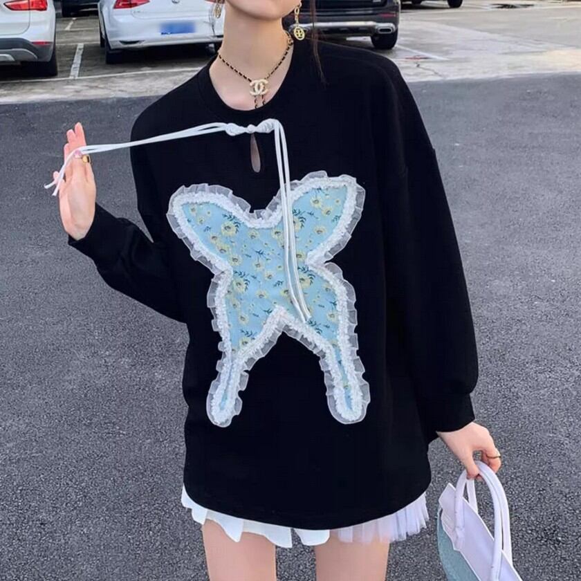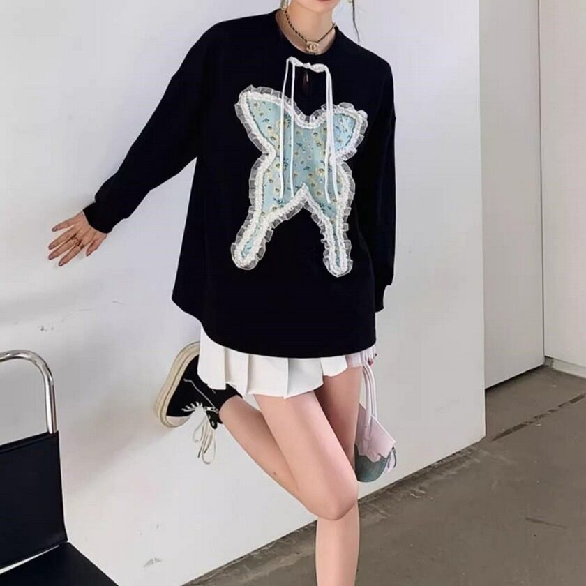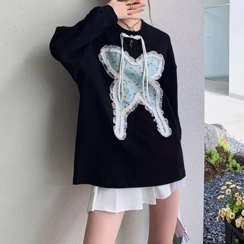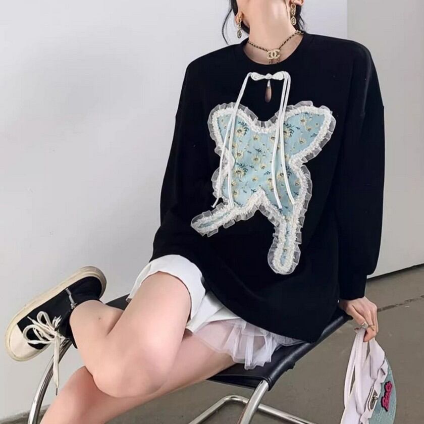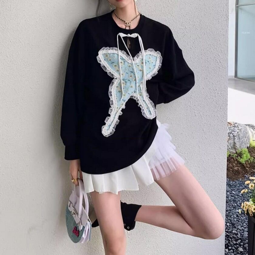 frill lace jacquard butterfly knit tops 0344