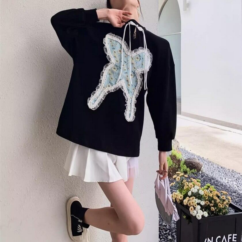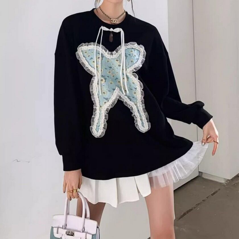 蝶々型のフリルレースが存在感抜群♡おしゃれなニットトップスです✨
