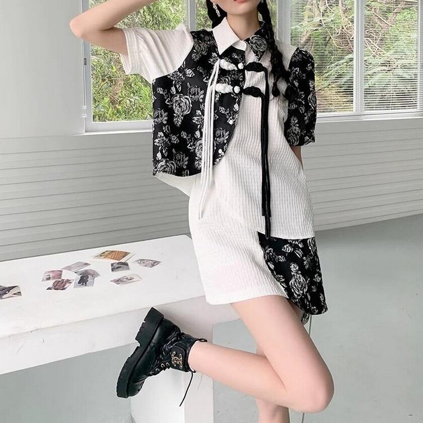 シックな花柄とチャイナ風デザインがおしゃれ♪セットアップ✨