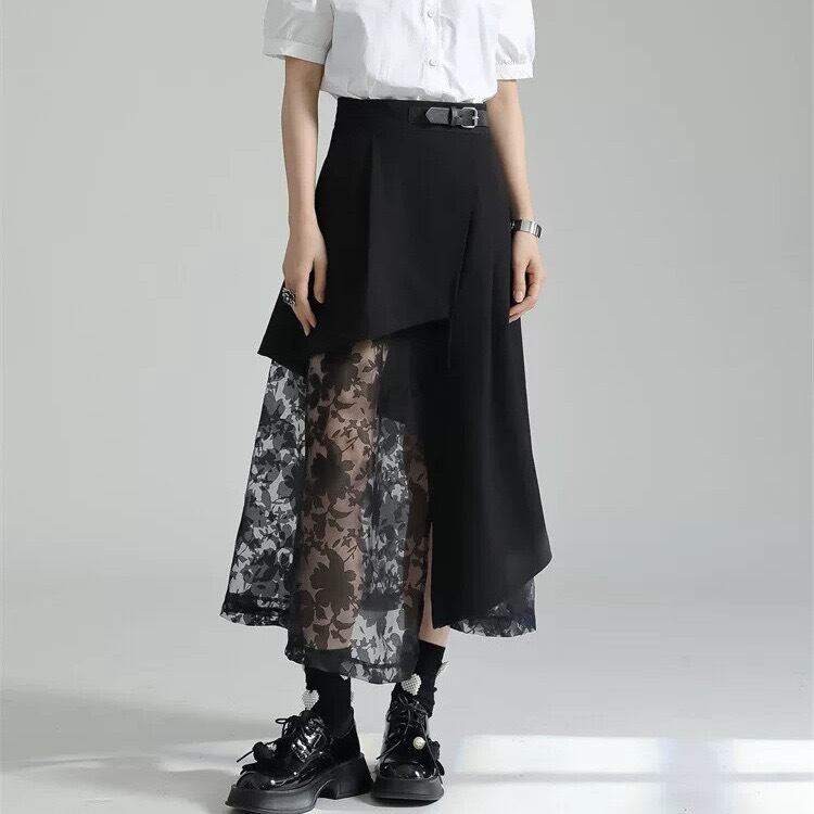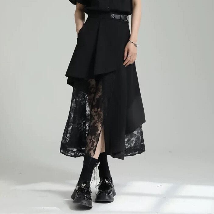 レース生地とアシンメトリーなデザインがおしゃれ♪スカート✨