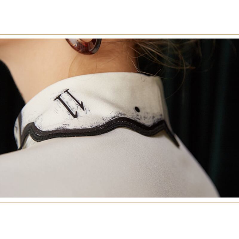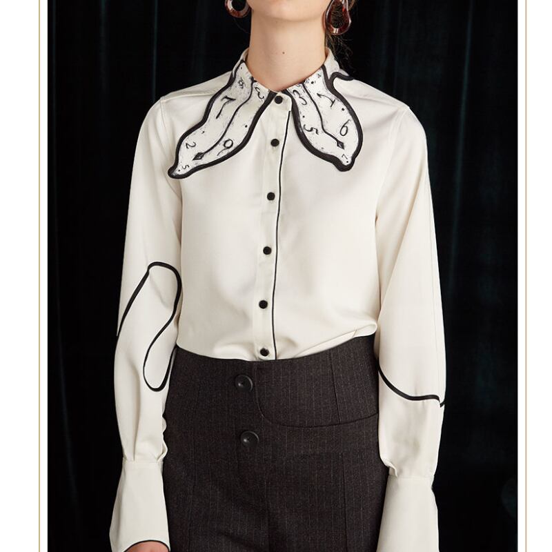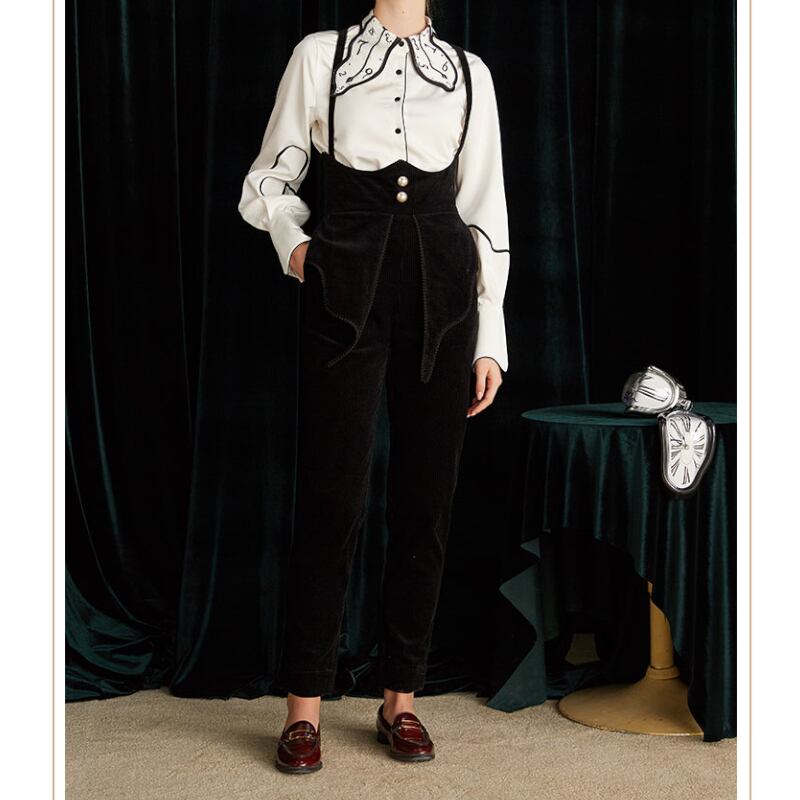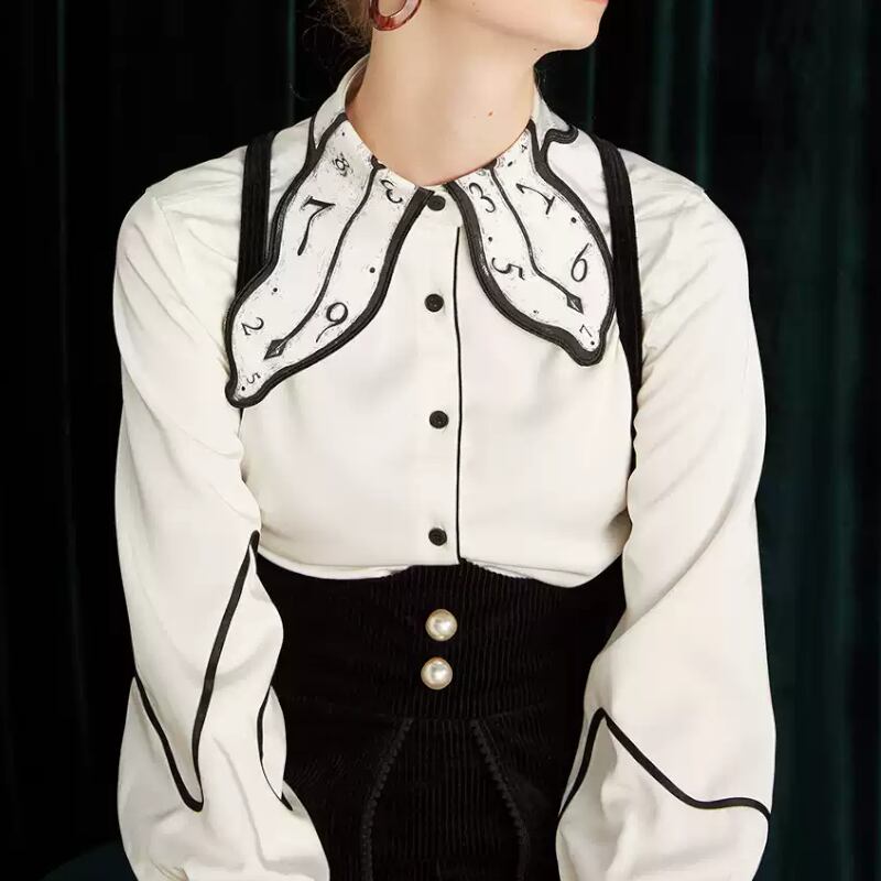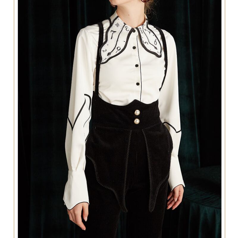 wonderland time collar niche design black and white shirt 0422