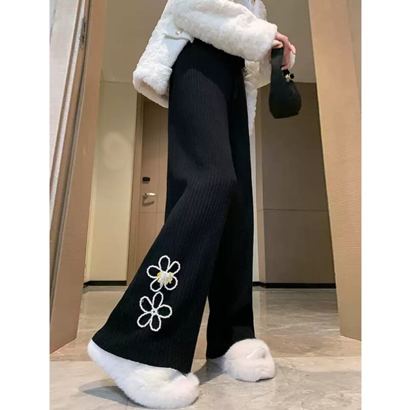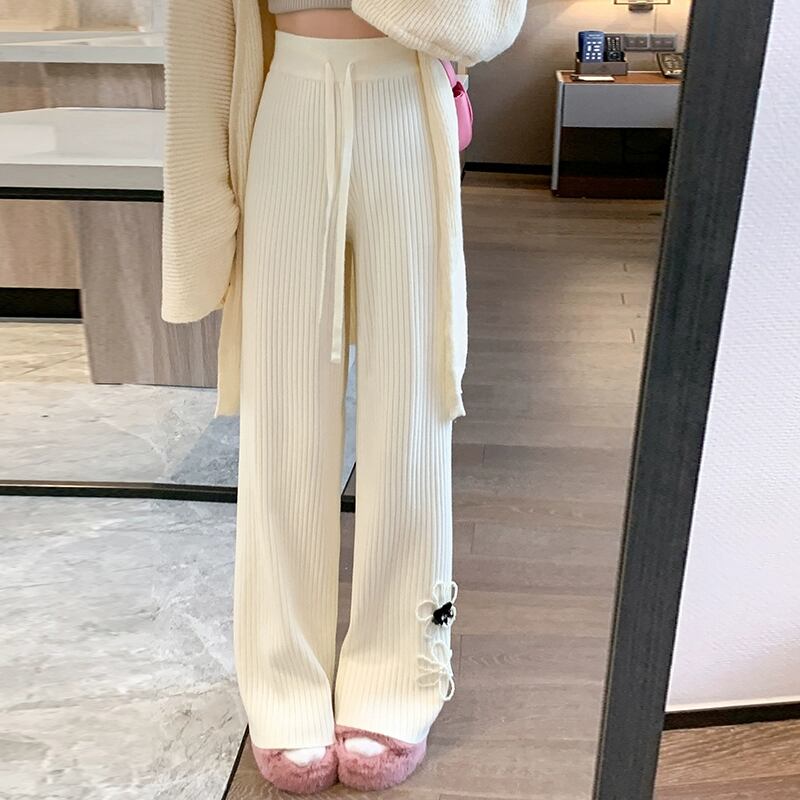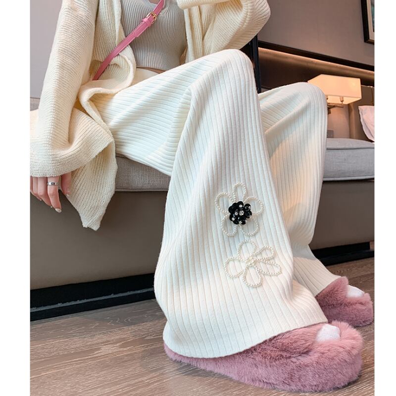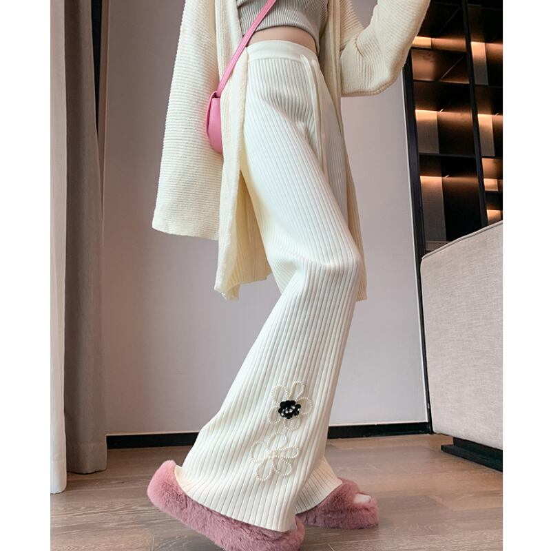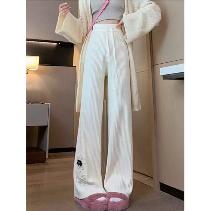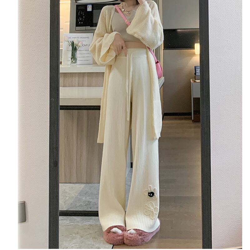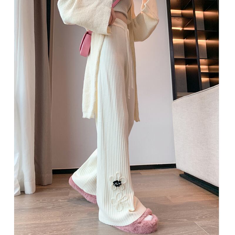 cute girly flower knitted wide leg casual pants 【2color】 0439