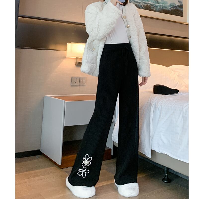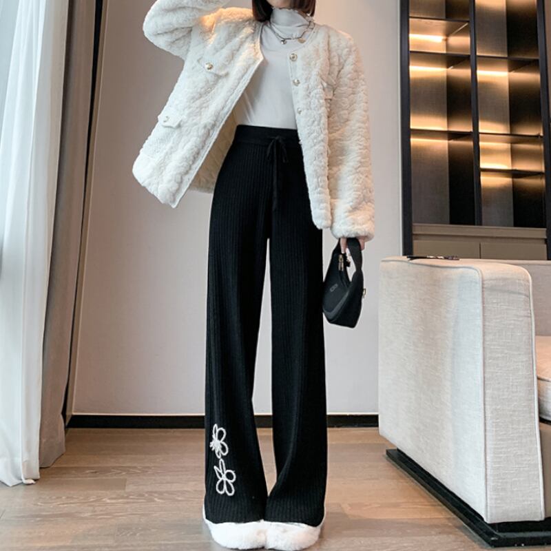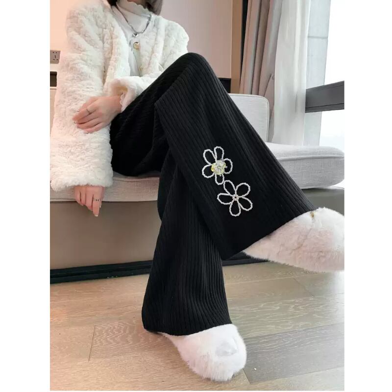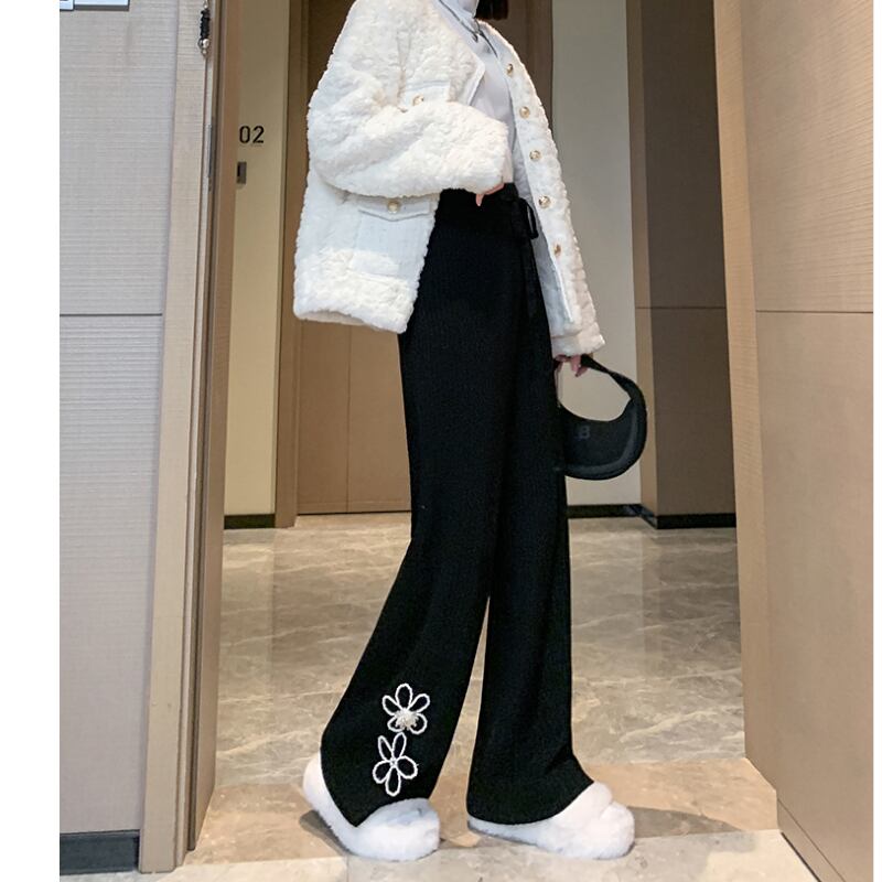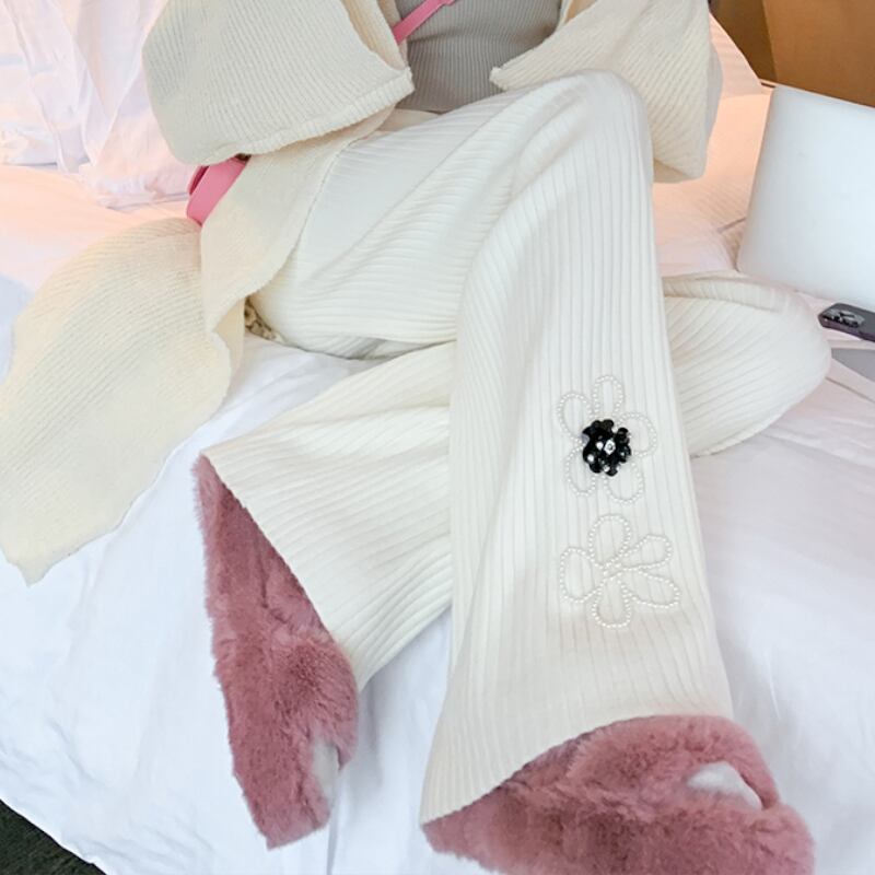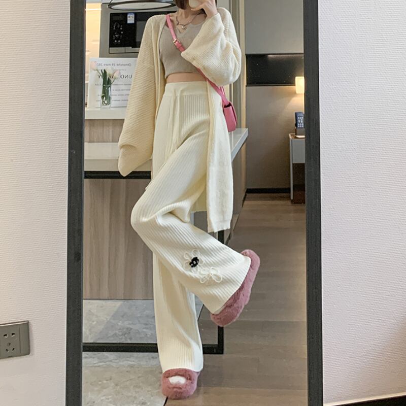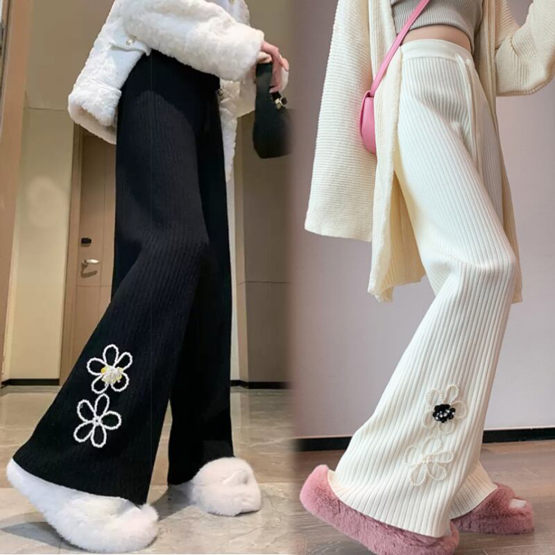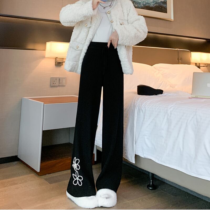 cute girly flower knitted wide leg casual pants 【2color】 0439