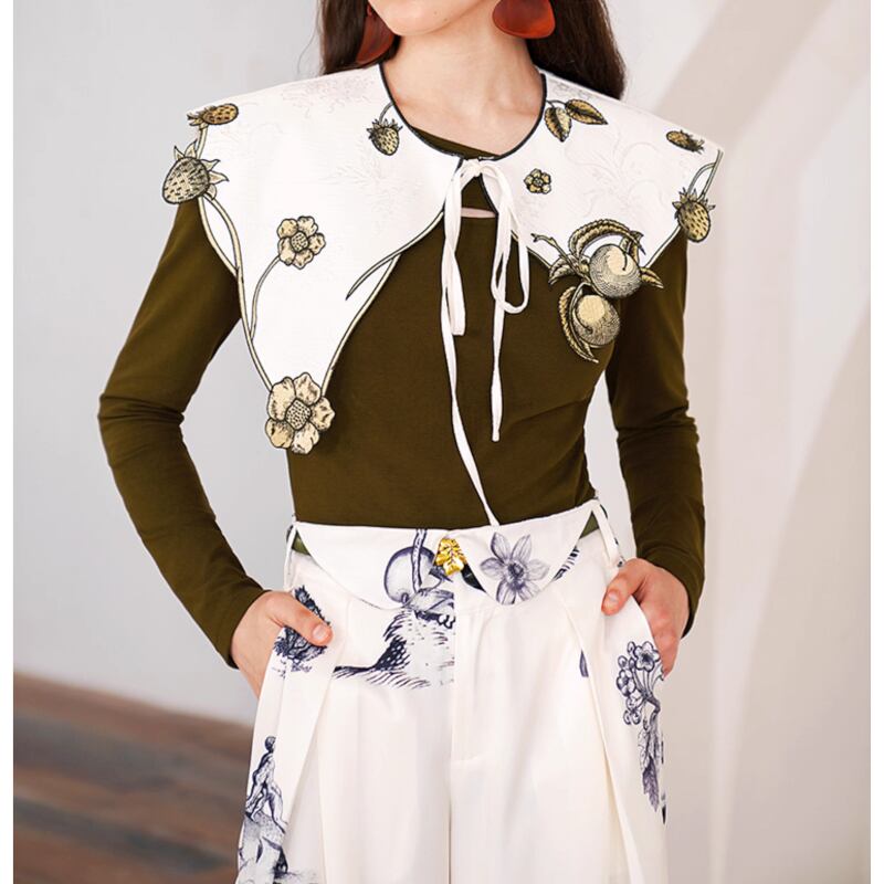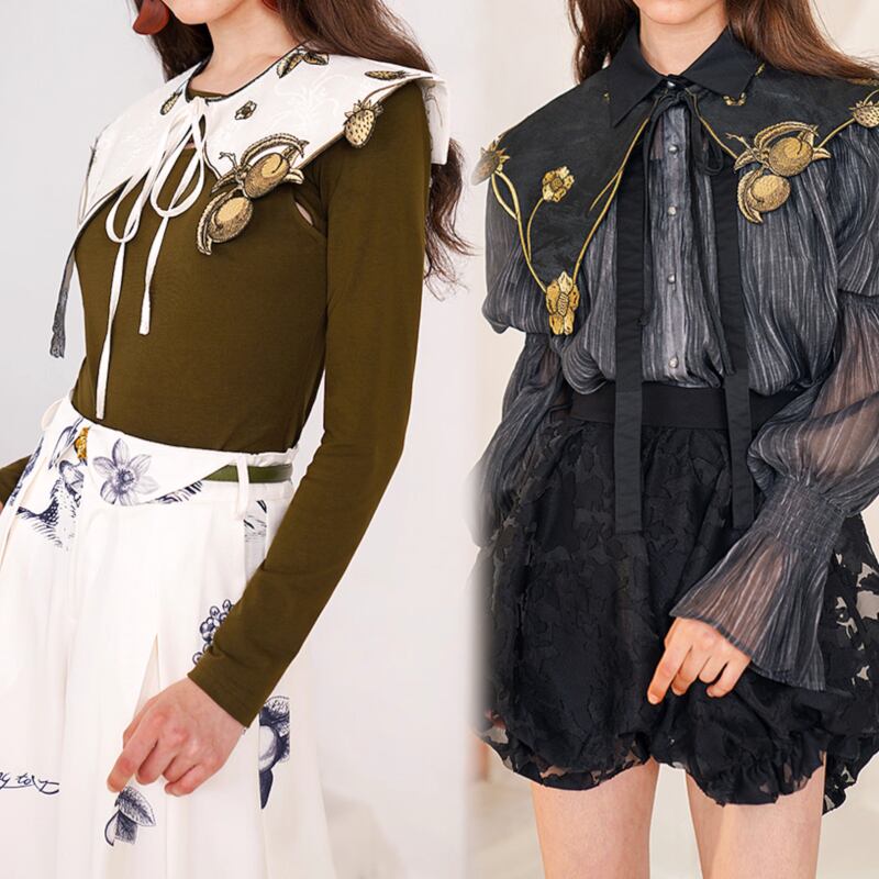 dreaming floral and botanical embroidered fake collar 【2color】0431