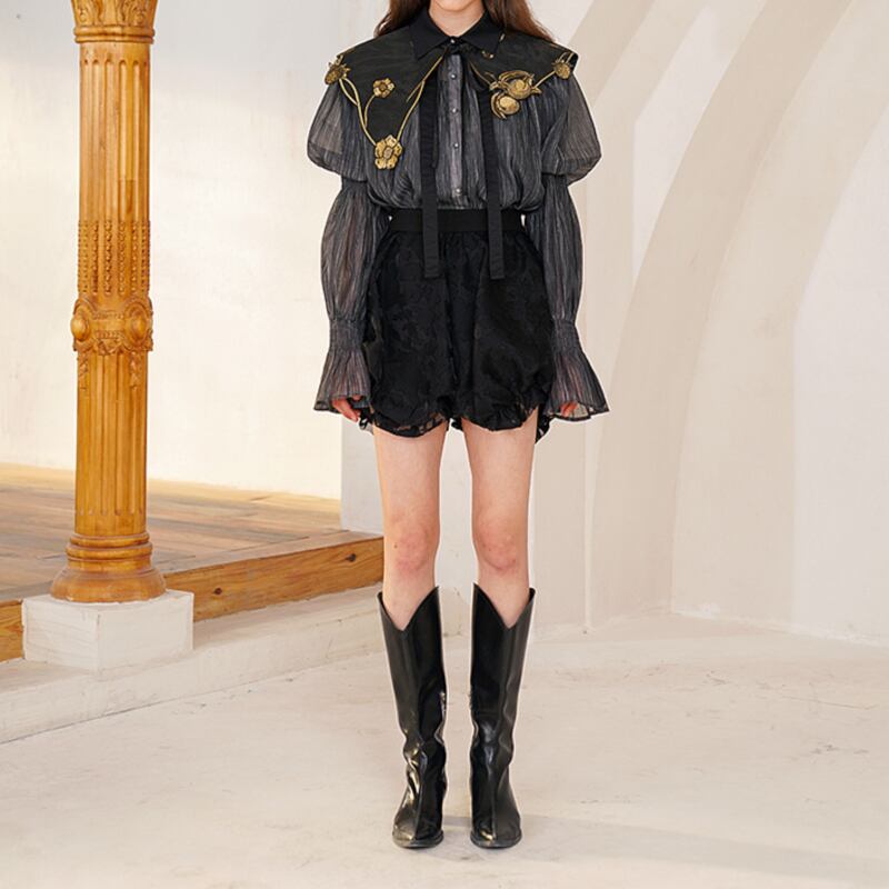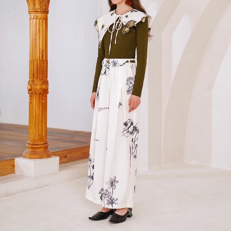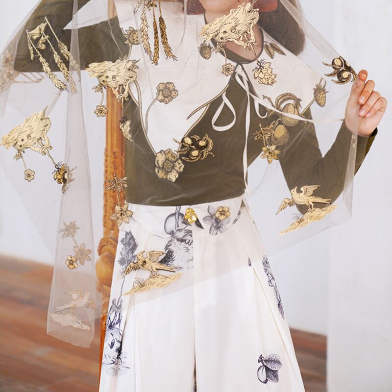 dreaming floral and botanical embroidered gauze niche design skirt 0424