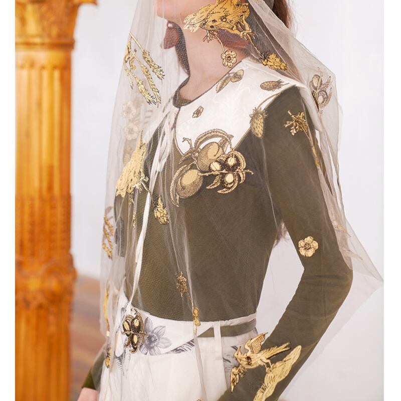 まるで夢に出てきそうな花植物の刺繍が施されたおしゃれなフェイクカラー✨