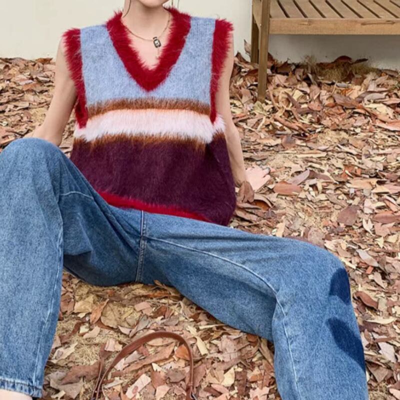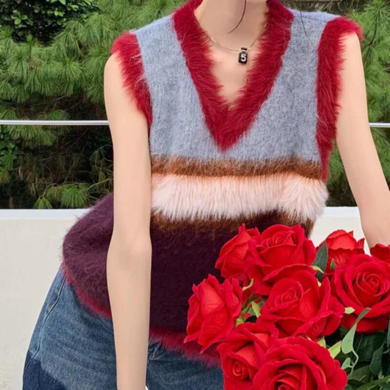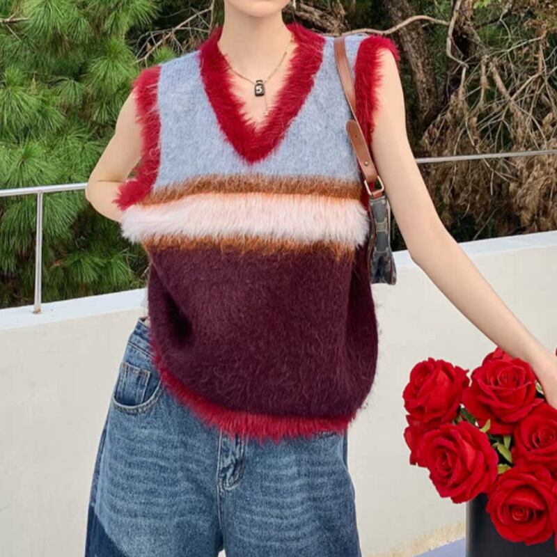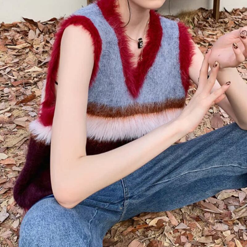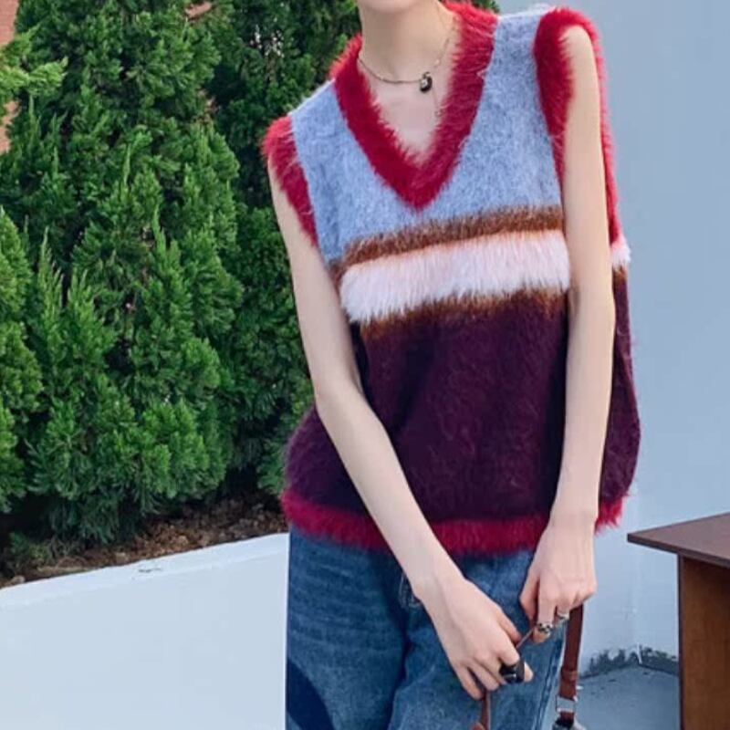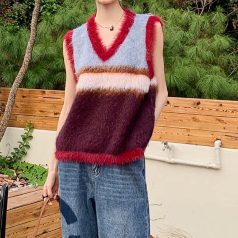 ふわふわニットのおしゃれなコントラストカラーのニットベスト✨