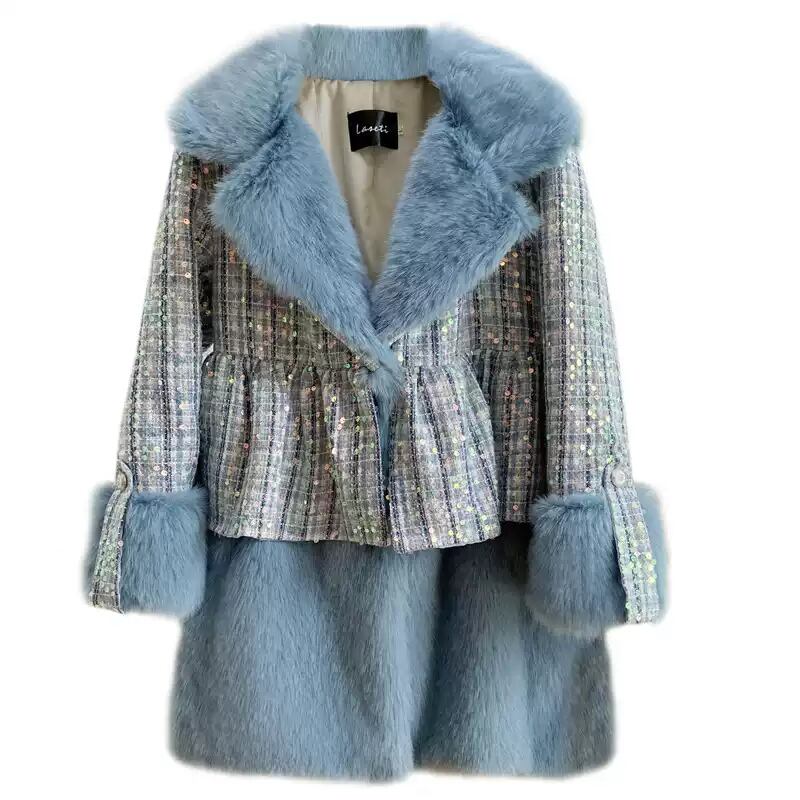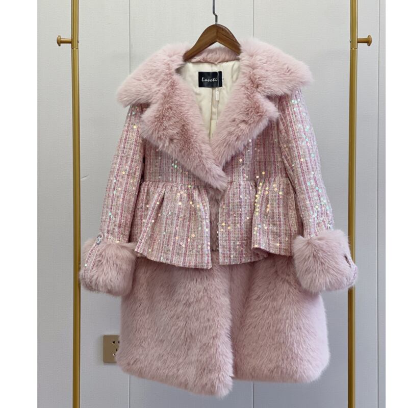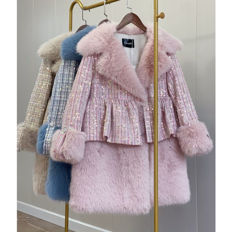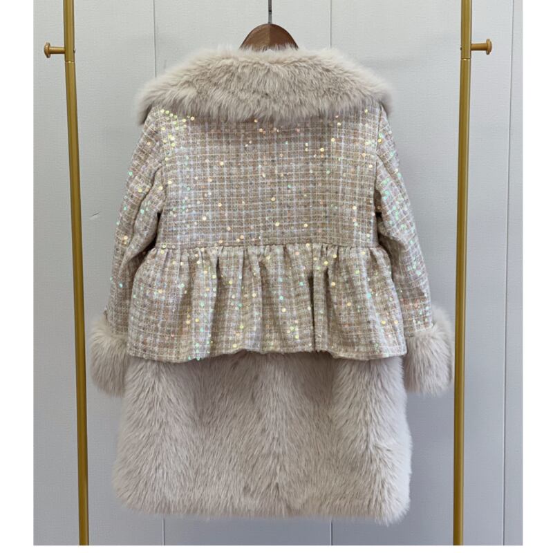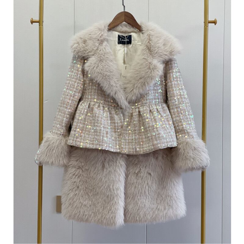 存在感抜群♪キラキラしたスパンコールがついたツイードのファーコート✨