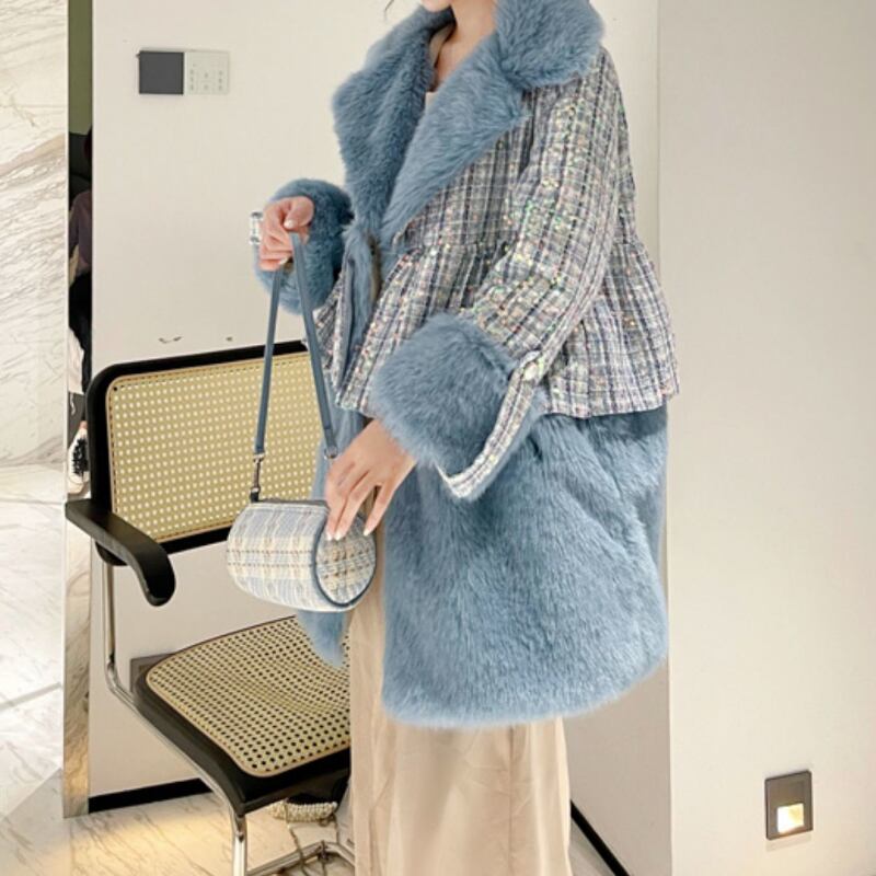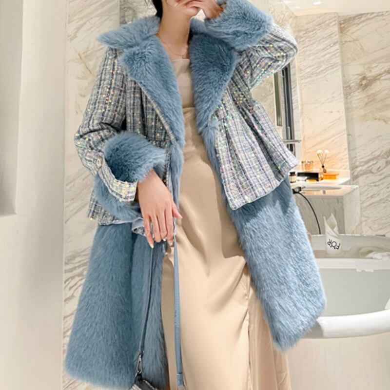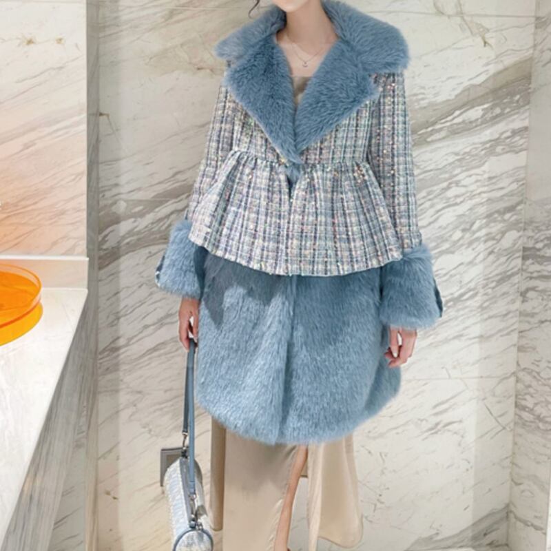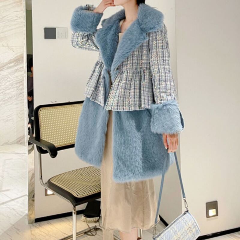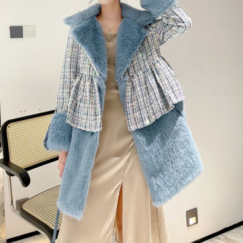 存在感抜群♪キラキラしたスパンコールがついたツイードのファーコート✨