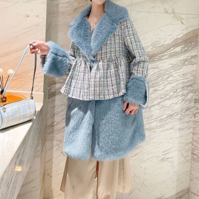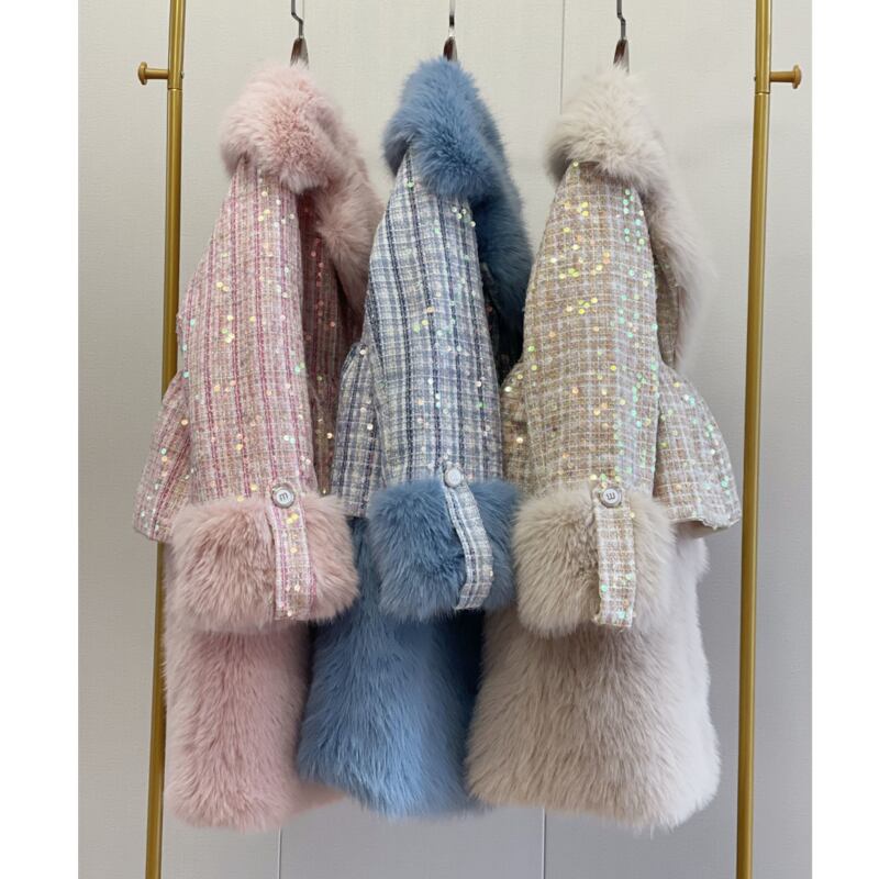 sparkling diamond imitation fur tweed coat 【3color】0472