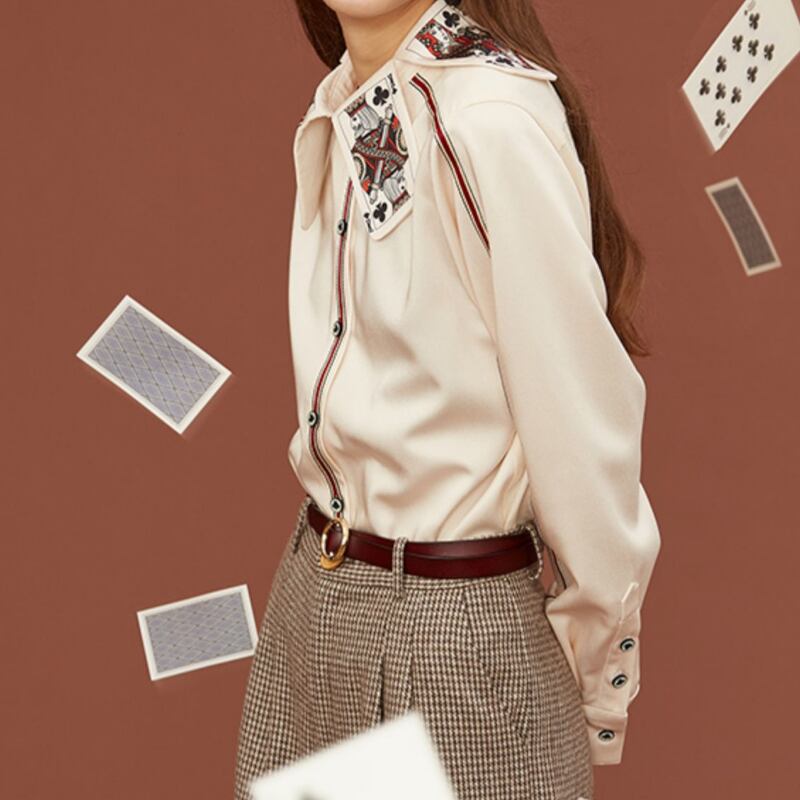 存在感抜群♪トランプのクラブ♣カードをモチーフにした個性的なデザインのブラウス✨