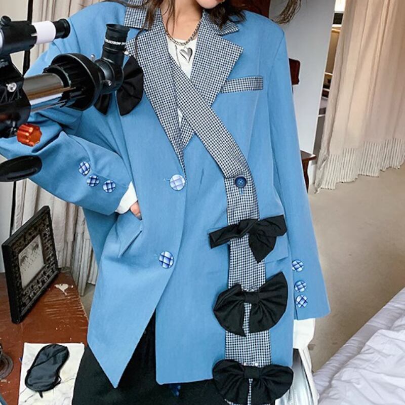 girly retro ribbon asymmetric blue suit 0550