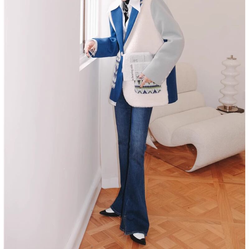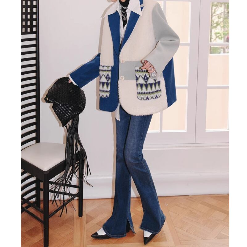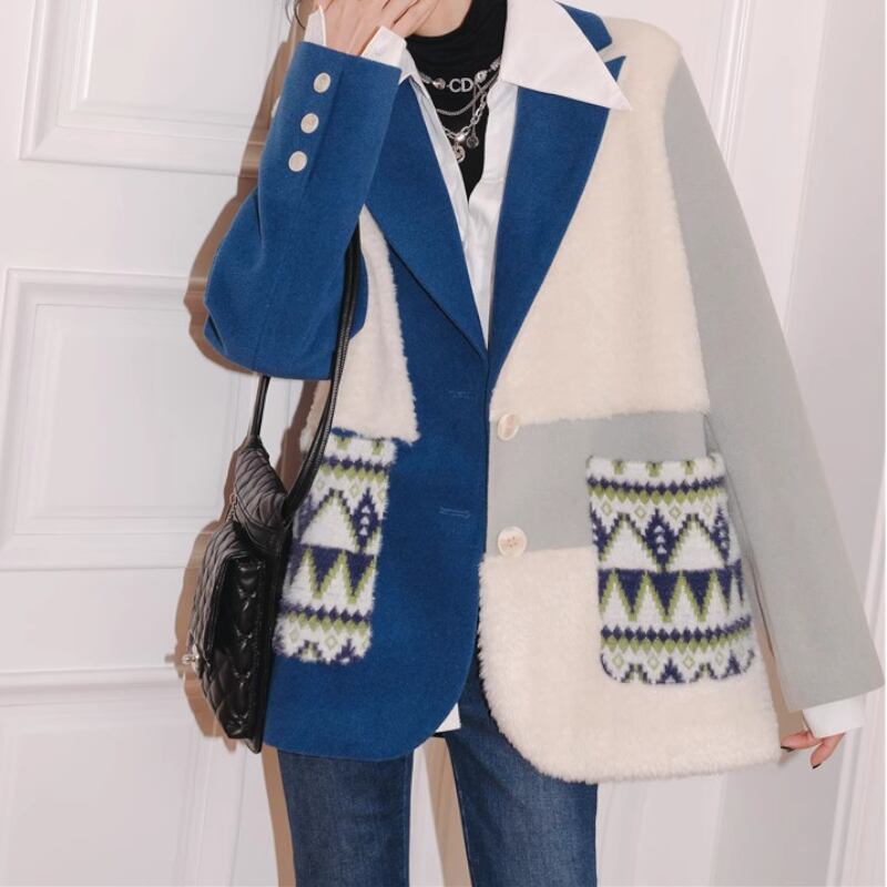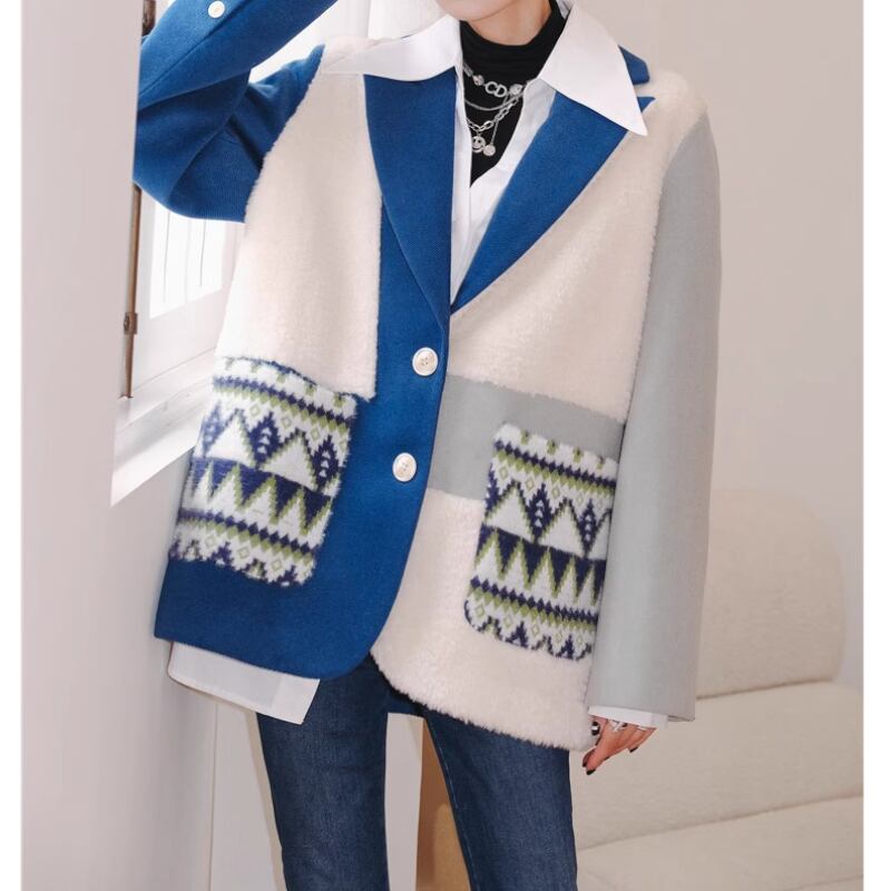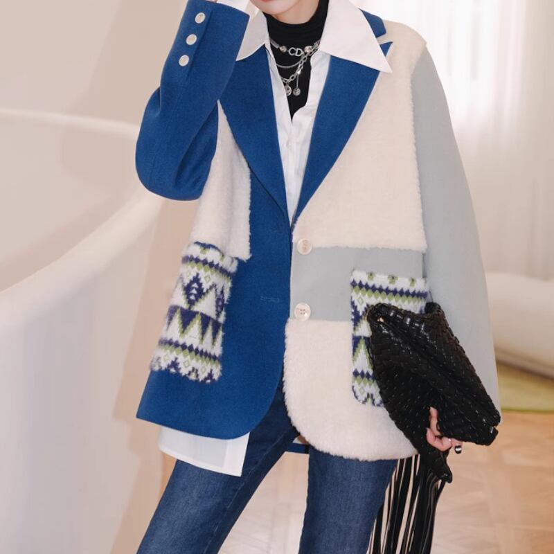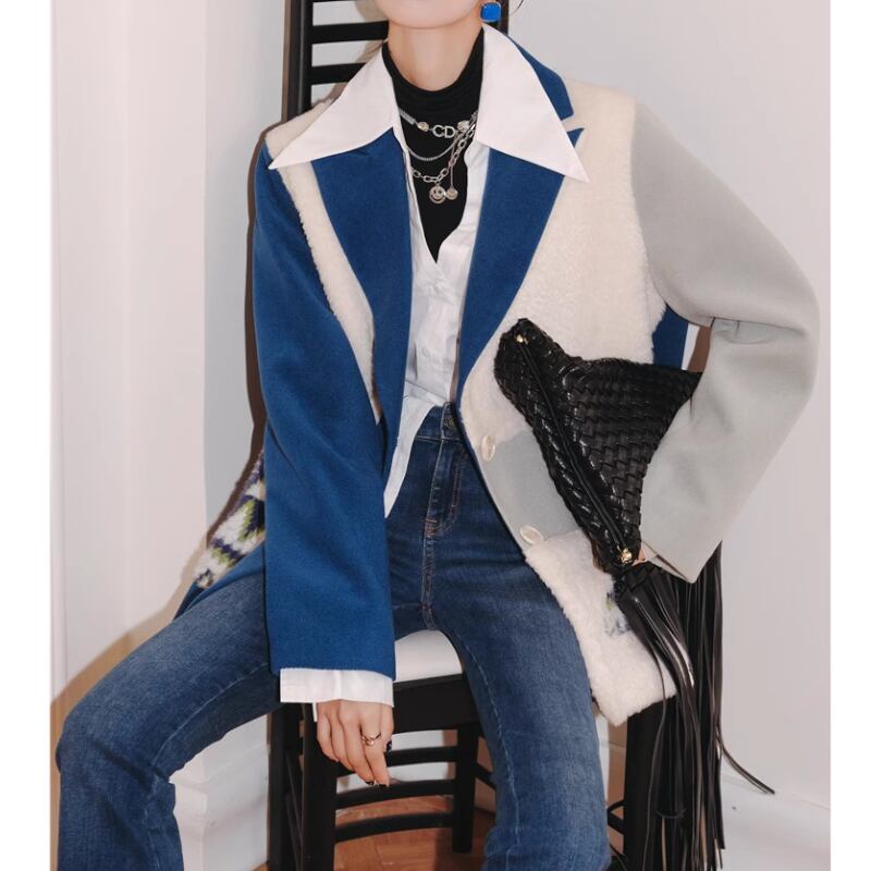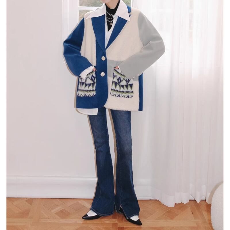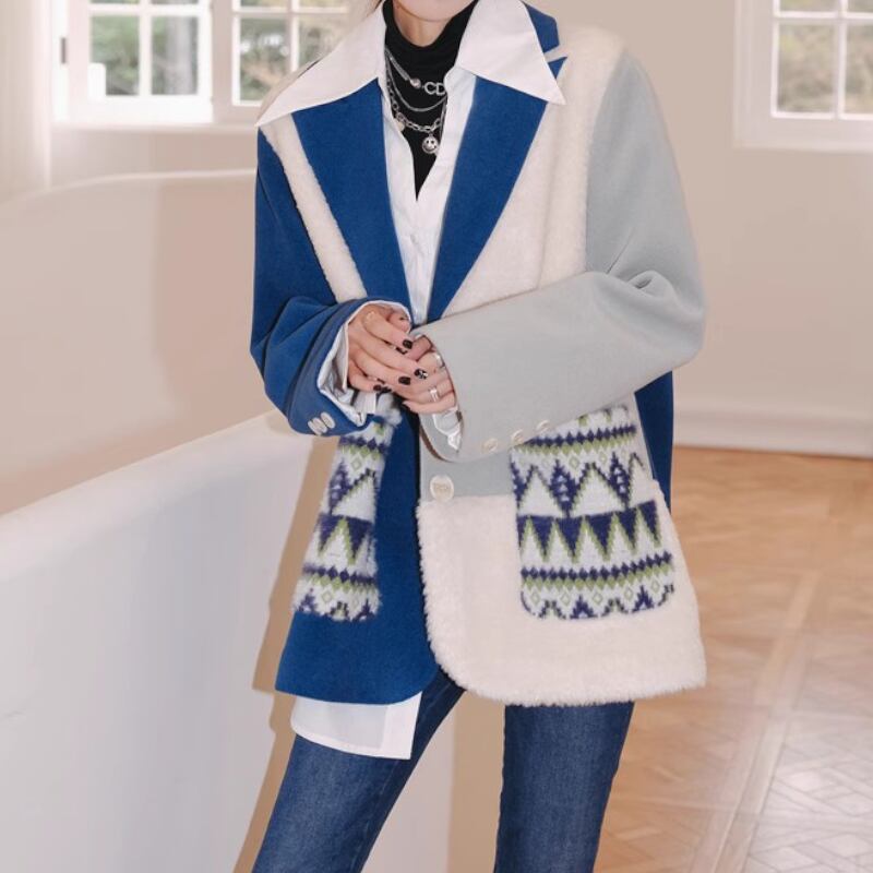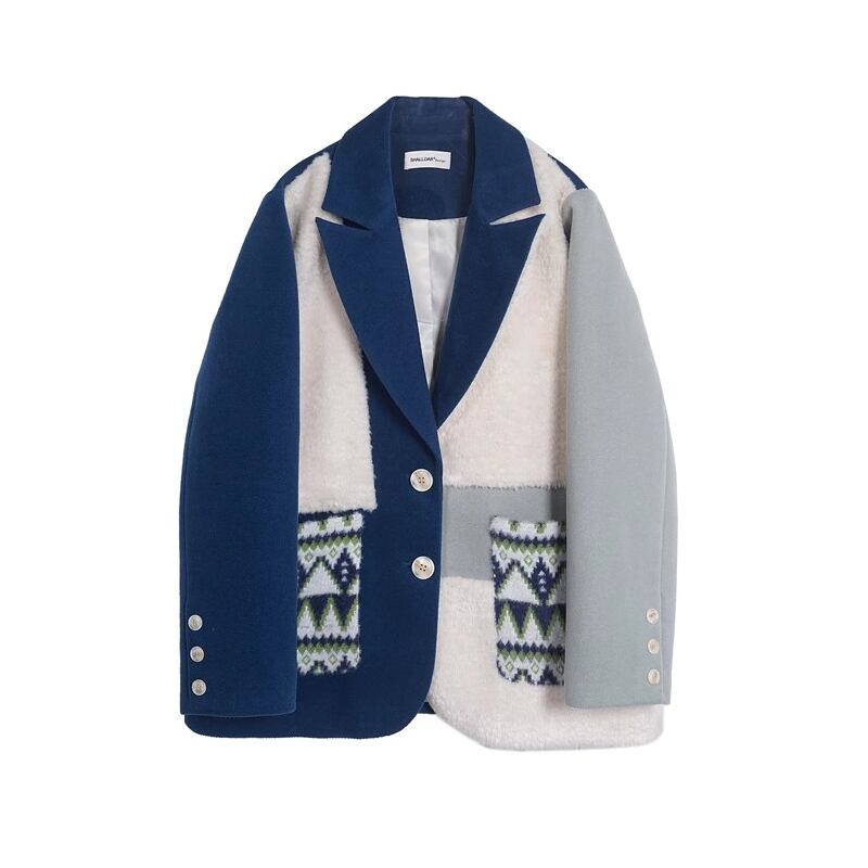 青白コントラスト、スーツ襟のどこかレトロでおしゃれなアシンメトリーデザインのコート✨