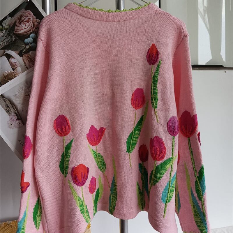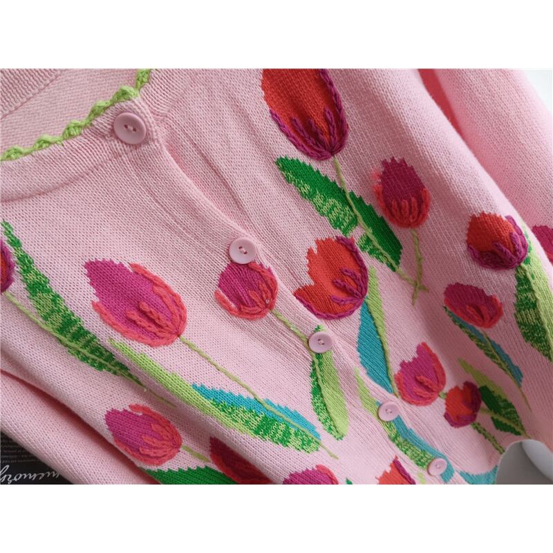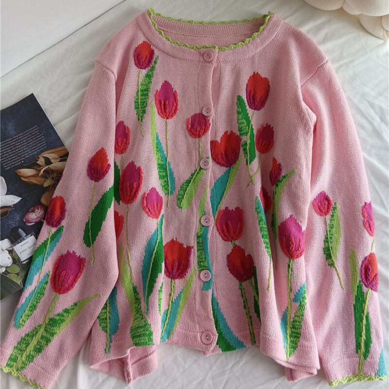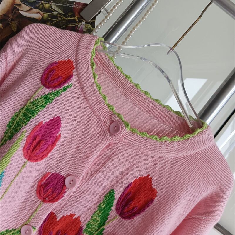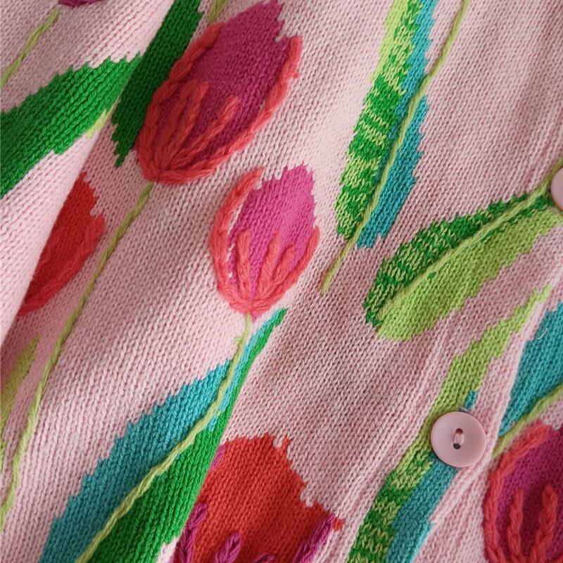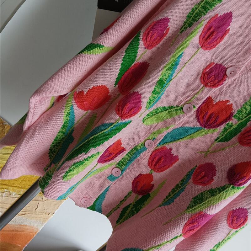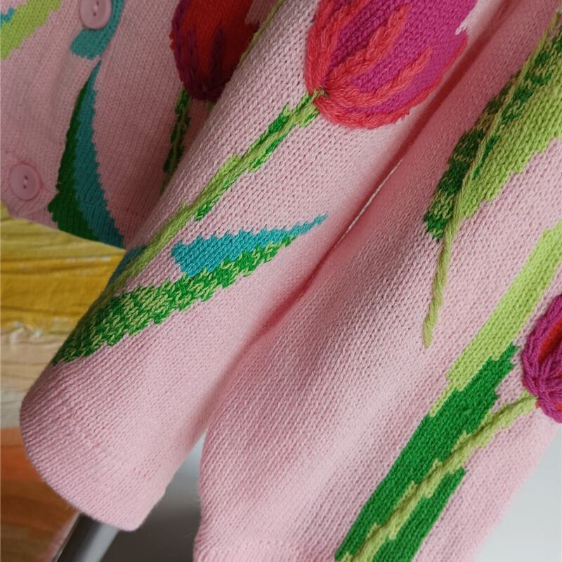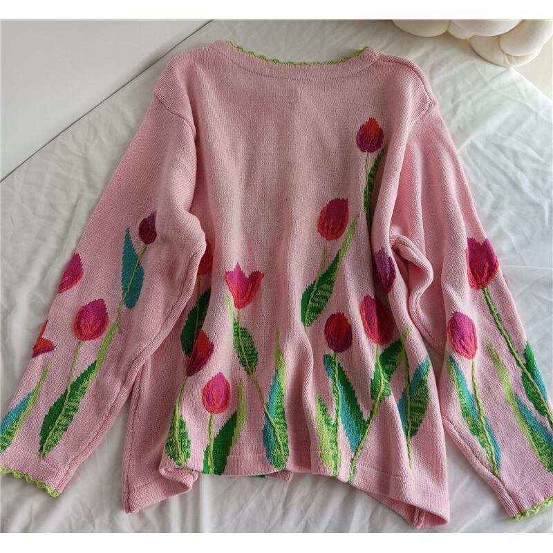 ガーリーレトロで可愛いチューリップ柄カーディガン✨