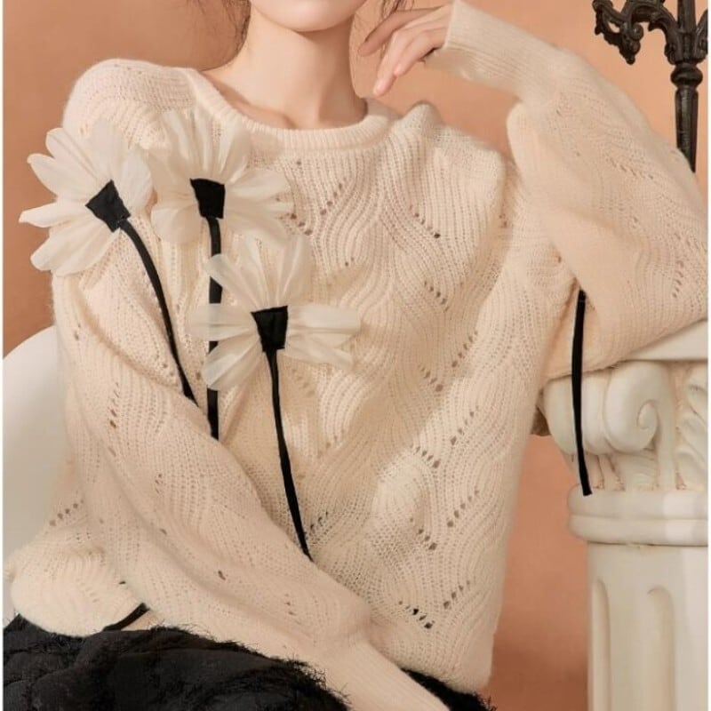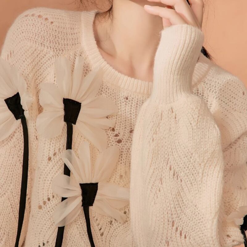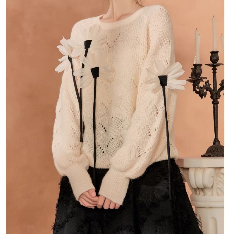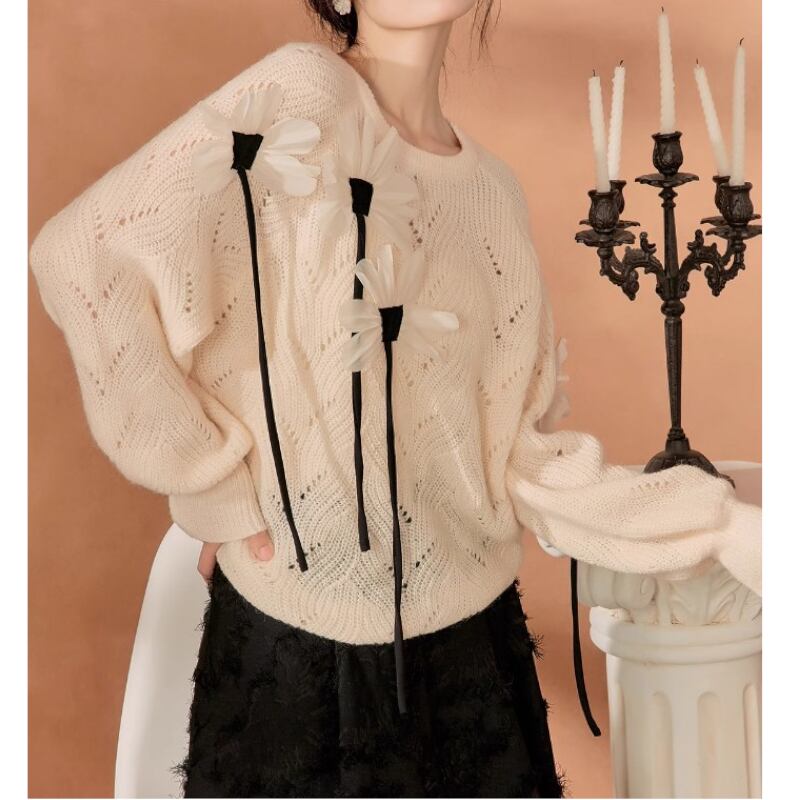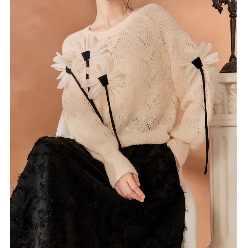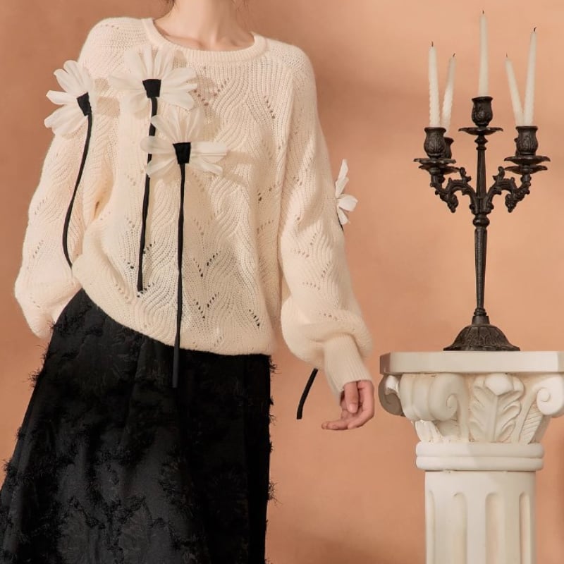 素敵で可愛らしい花々が咲いているニットトップス✨