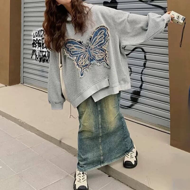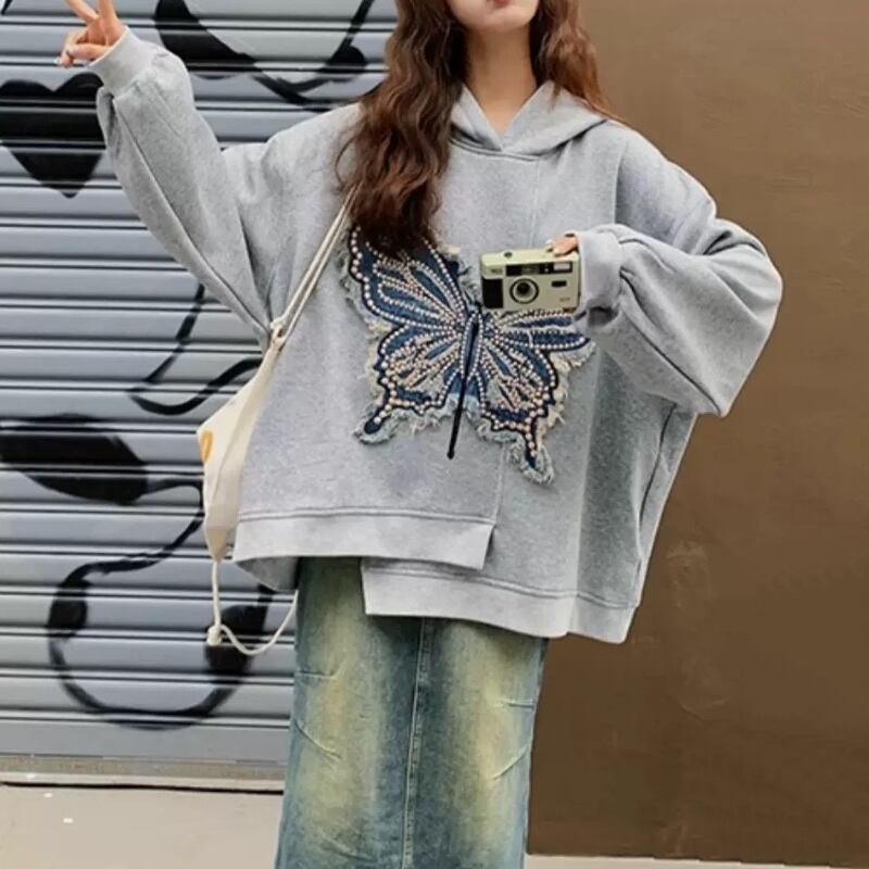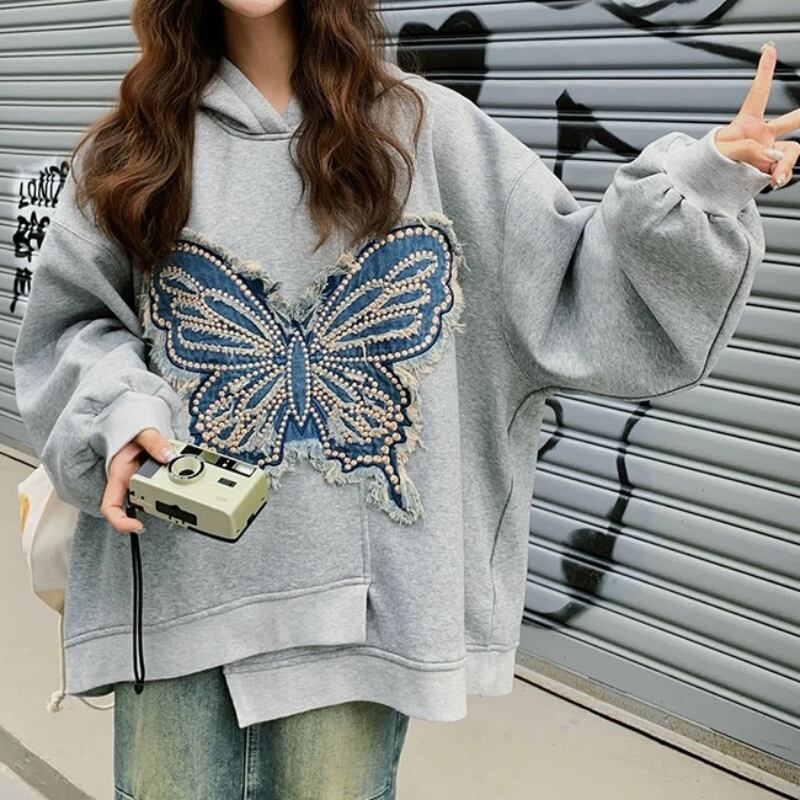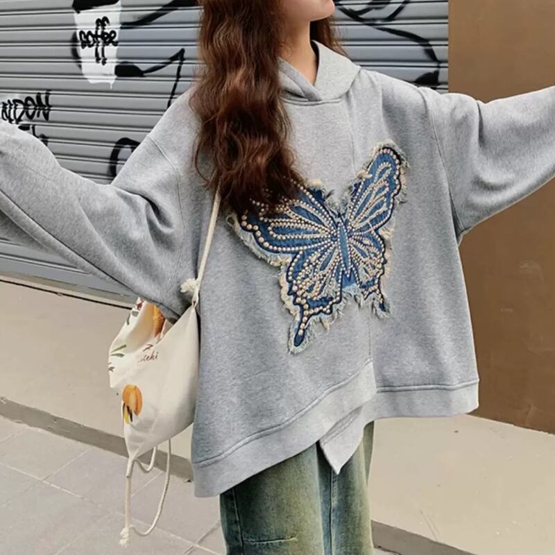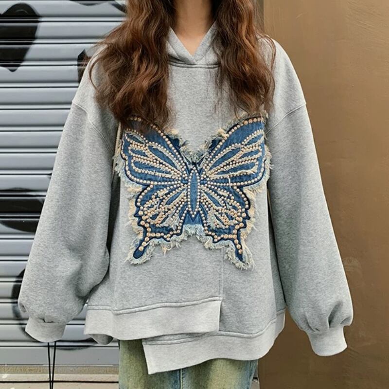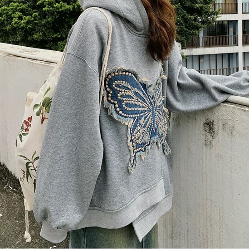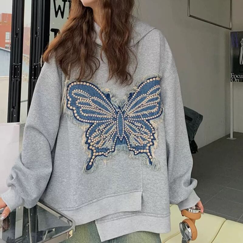 dreaming embroidered butterfly hooded sweatshirt 0484