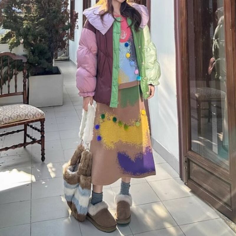 可愛いカラフルなぼんぼんがついたおしゃれなグラディエーションデザインのニットトップス✨