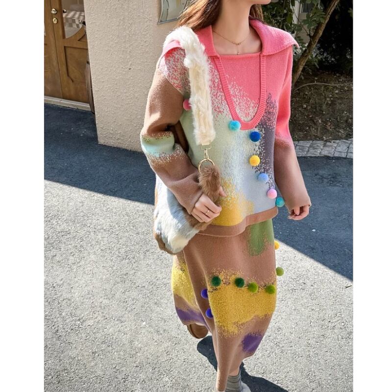 sweet colorful ball gradient knitted tops 0604