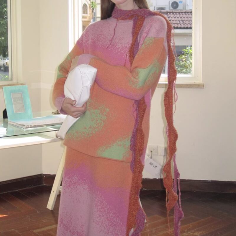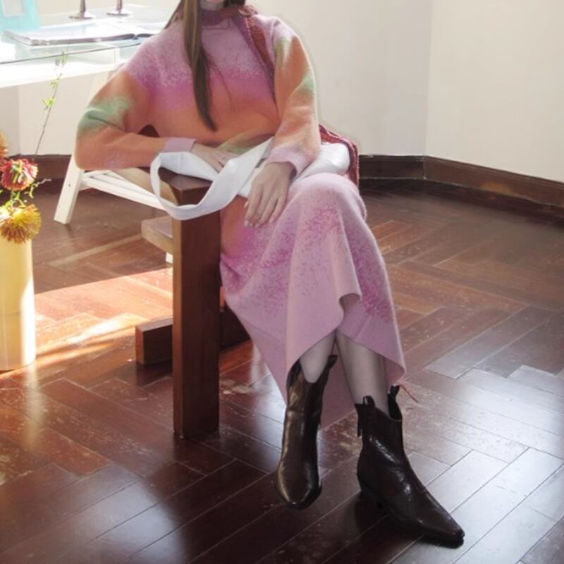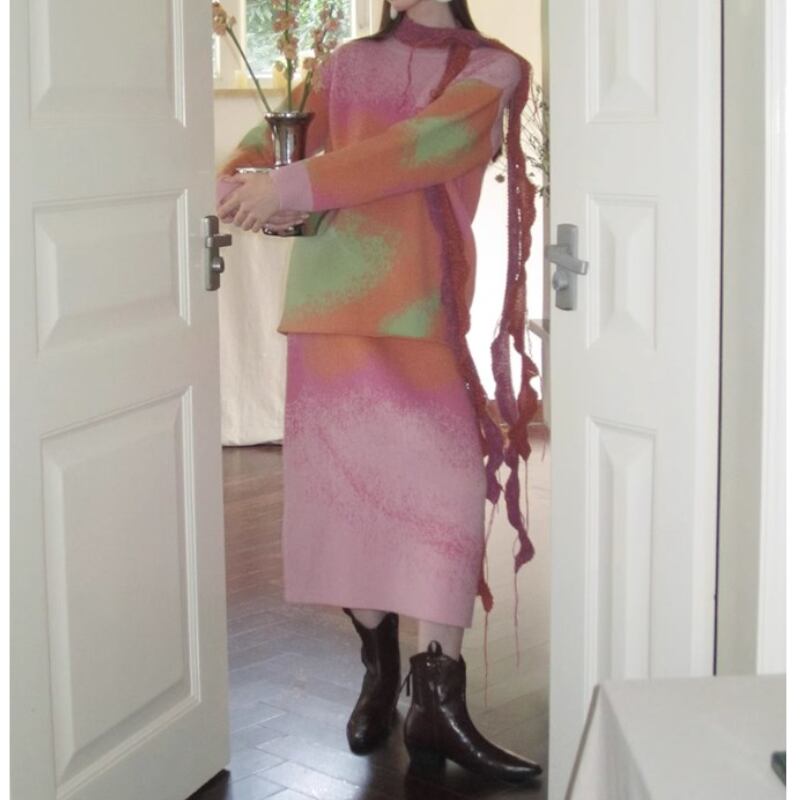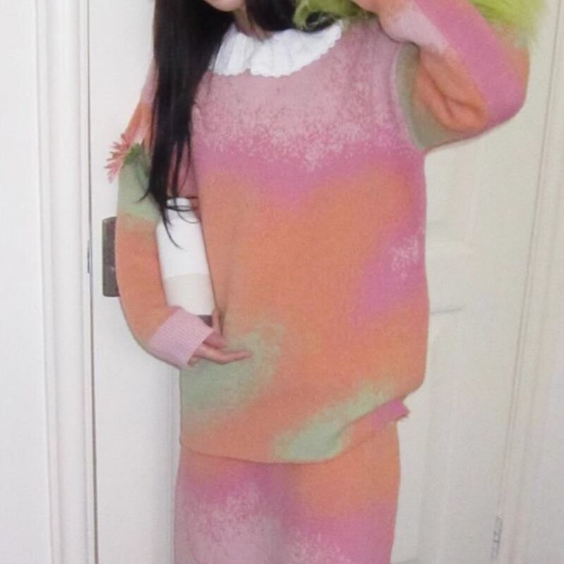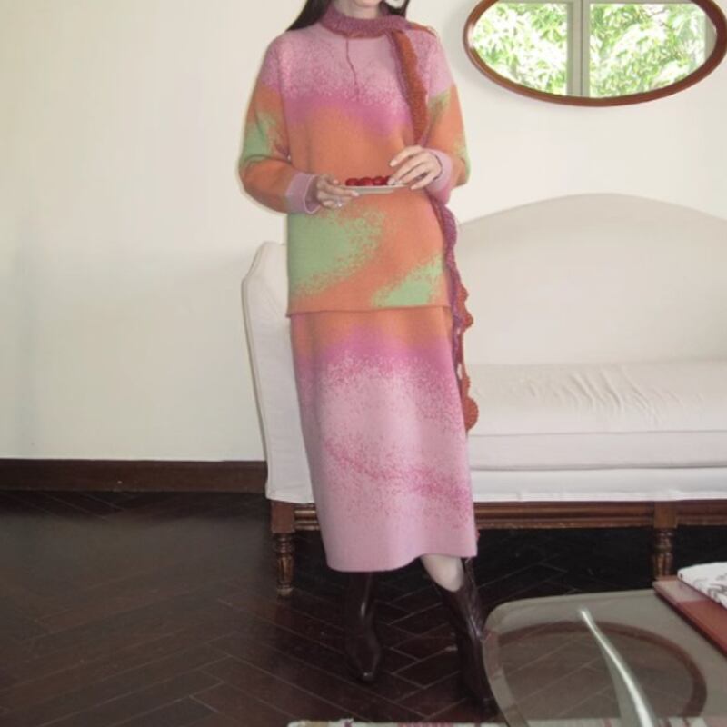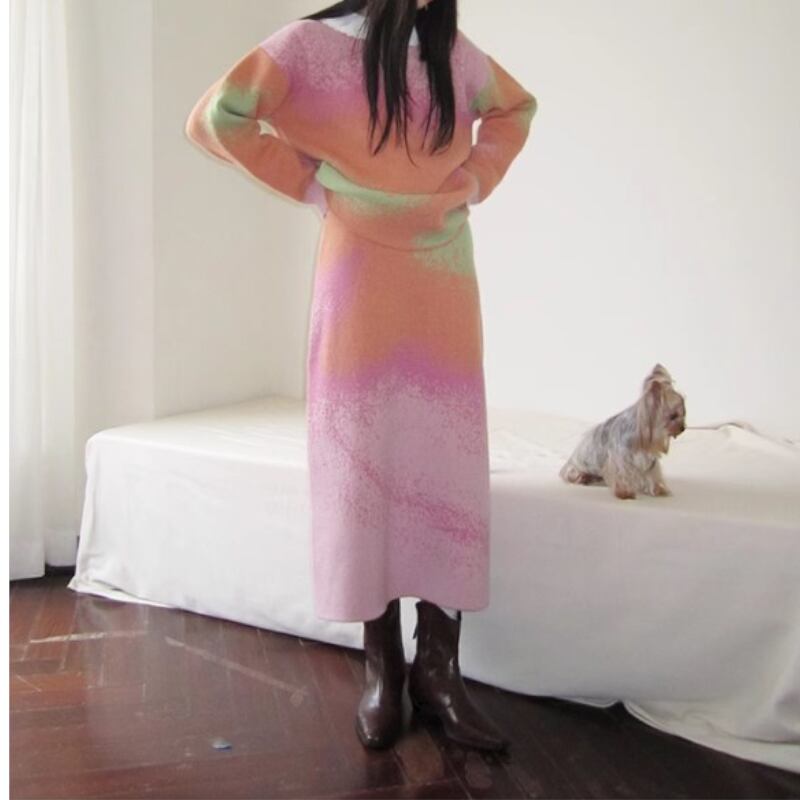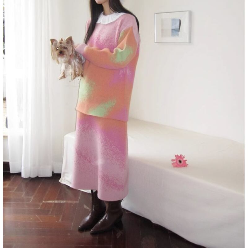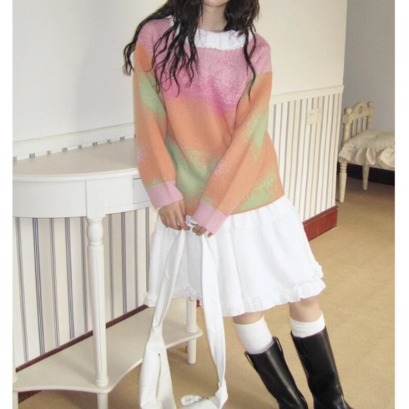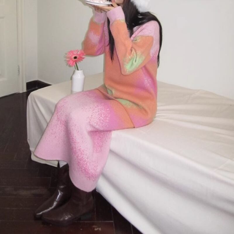 可愛いピンク系グラディエーションカラーのニットトップス✨