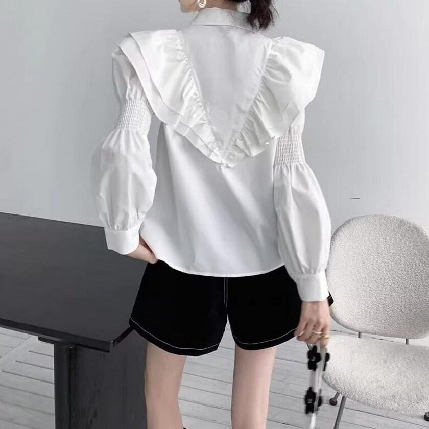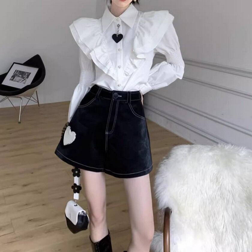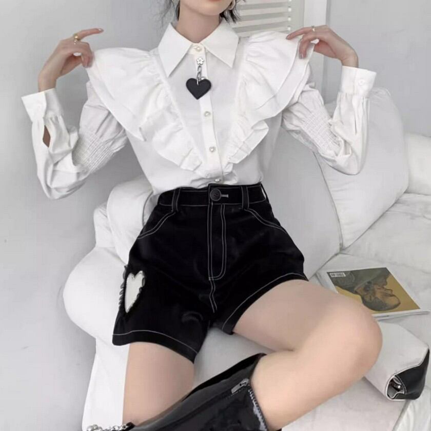 ハートマークが可愛いアクセントのフリルブラウス✨