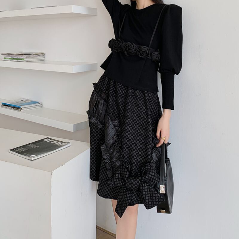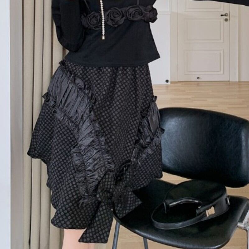 girly ribbon polka dot jacquard ruffle irregular skirt 0615