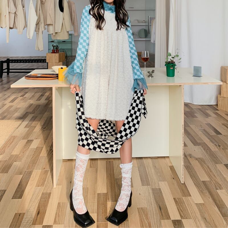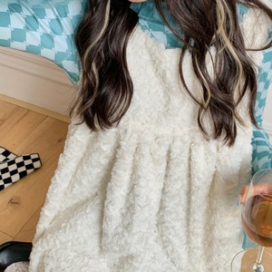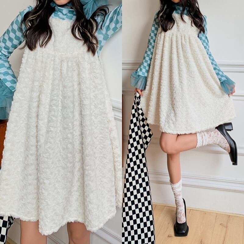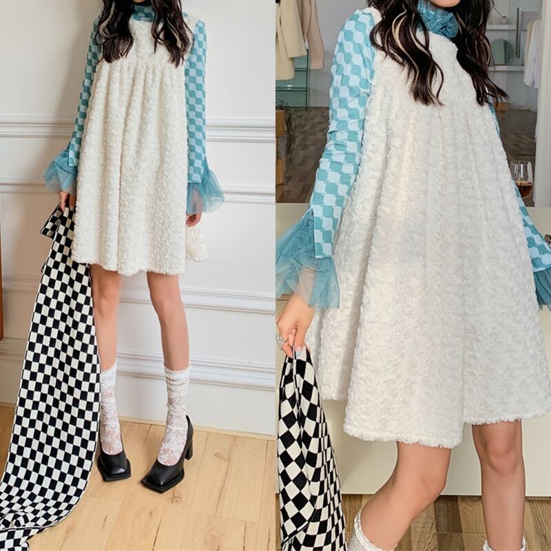 ふわふわ手触りがいい♪♪秋冬ホワイトワンピース✨