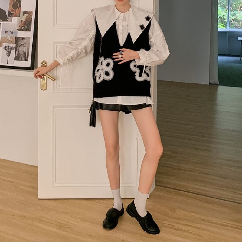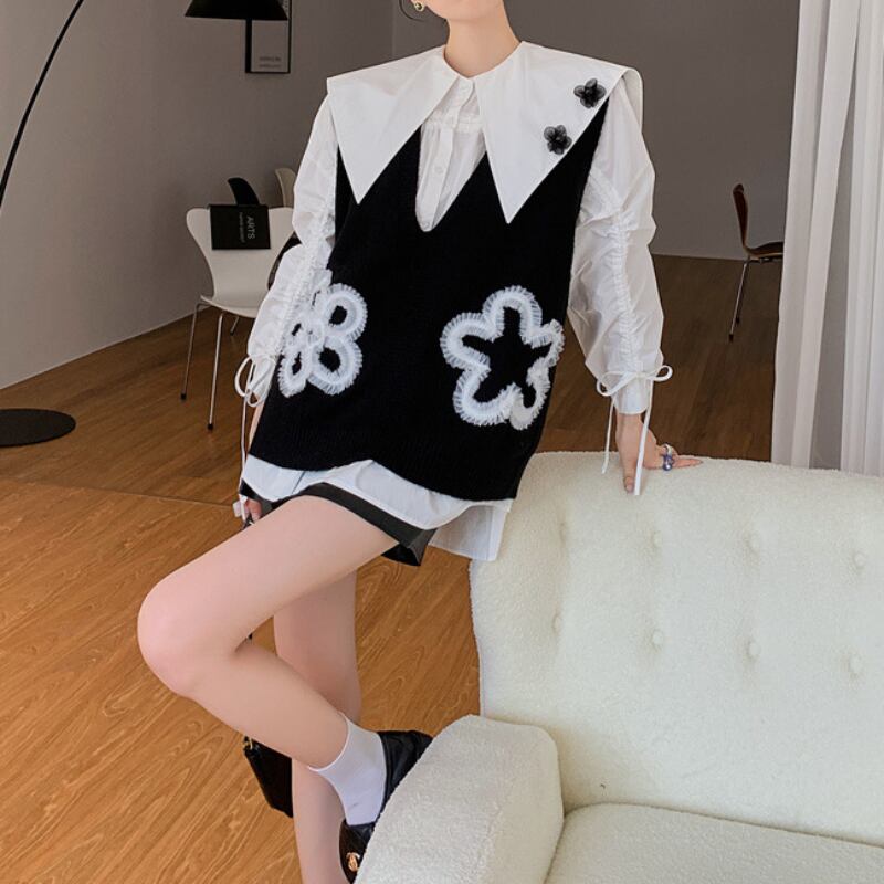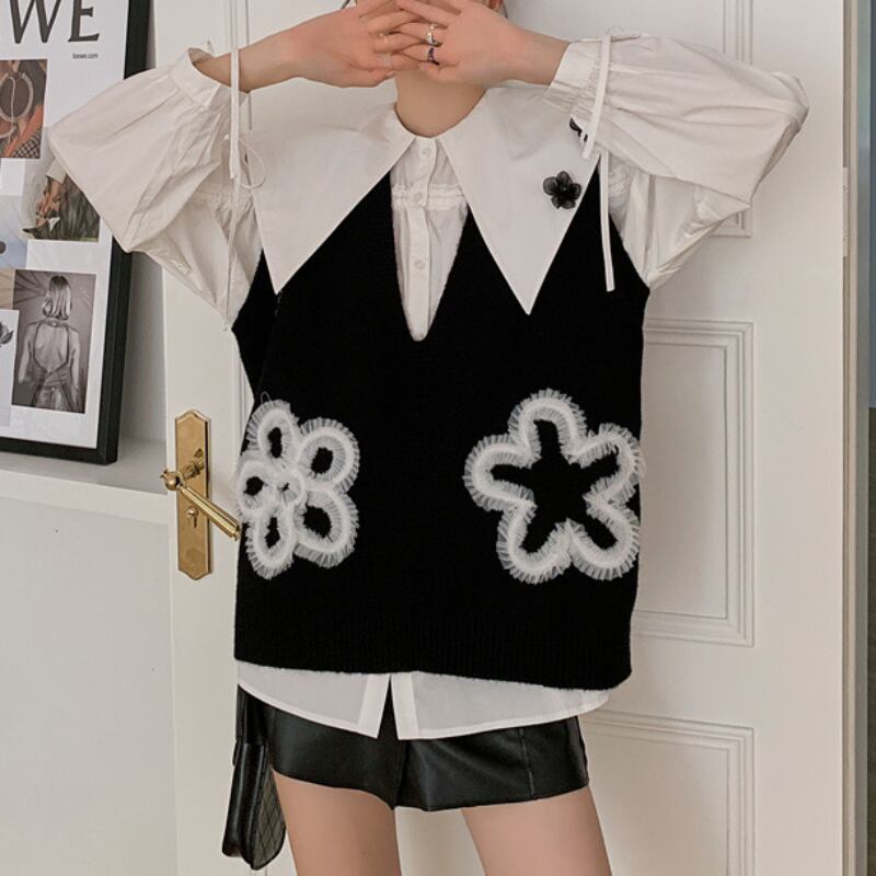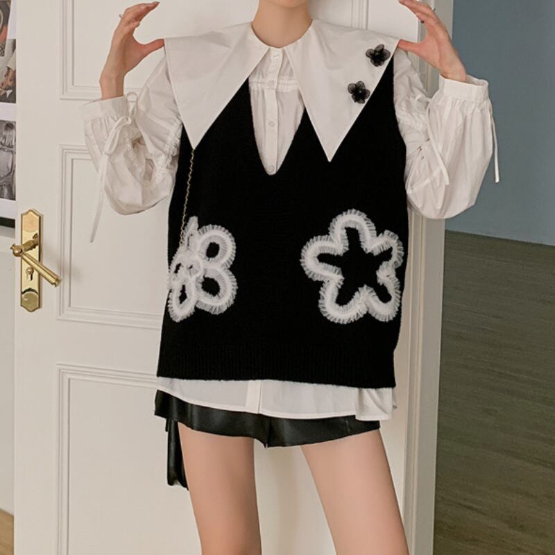 レースでかたどった可愛らしい花がついたニットベスト✨