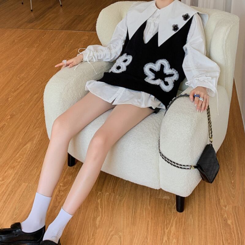 girly cute lace flower knit vest 0707