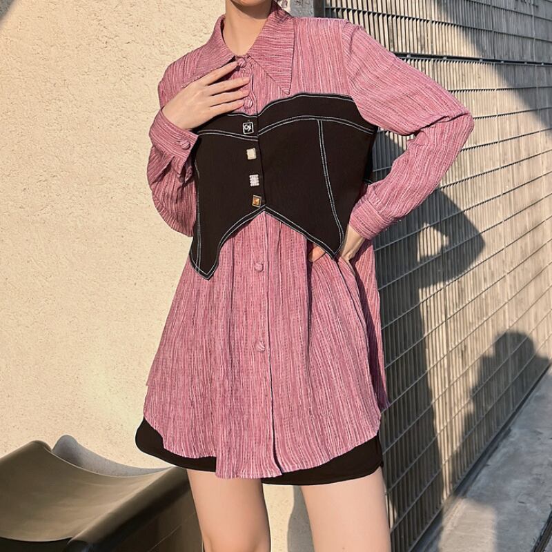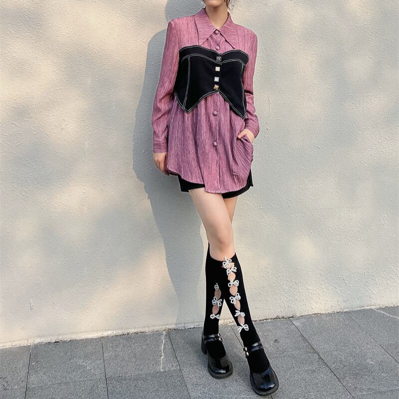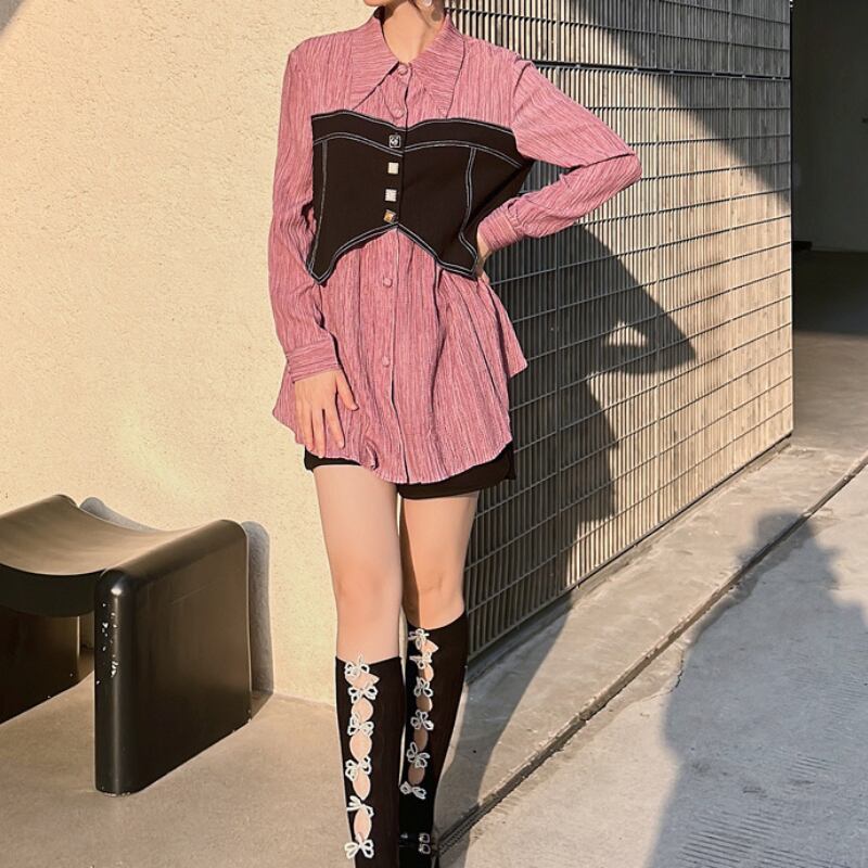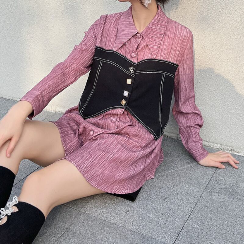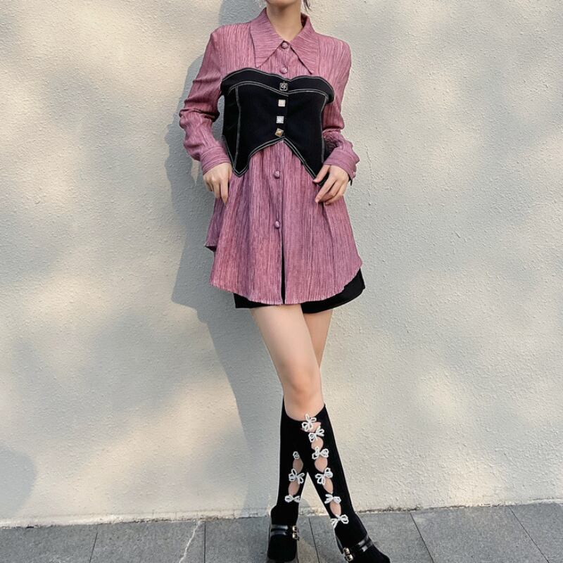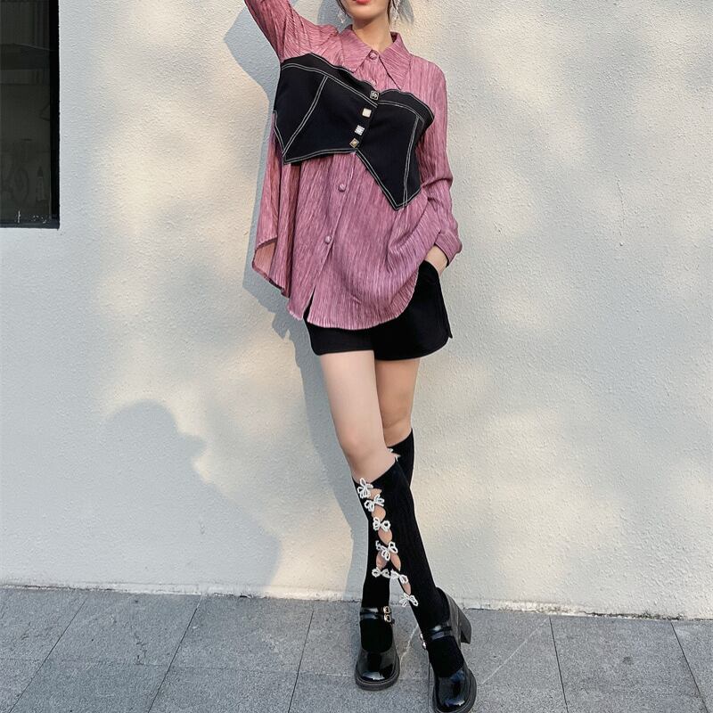 chic girly fake two-piece shirt 0708