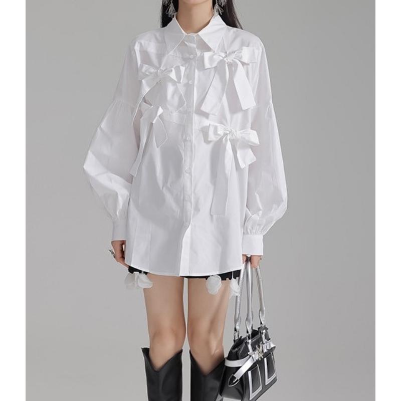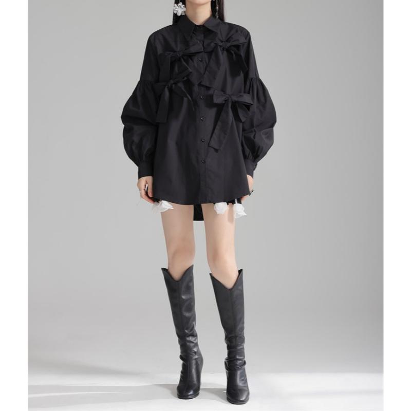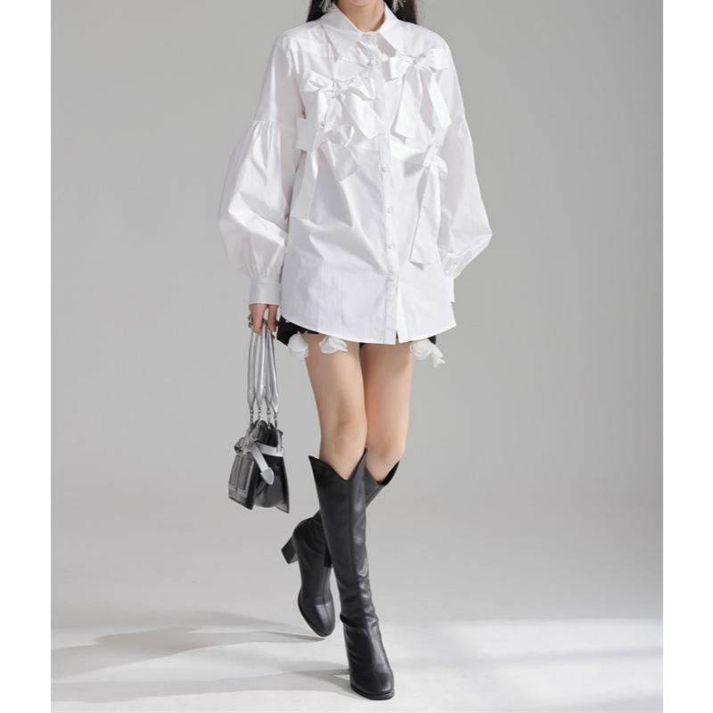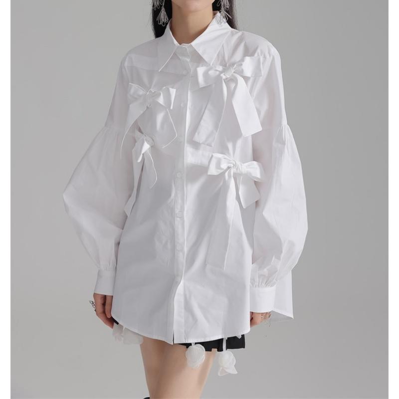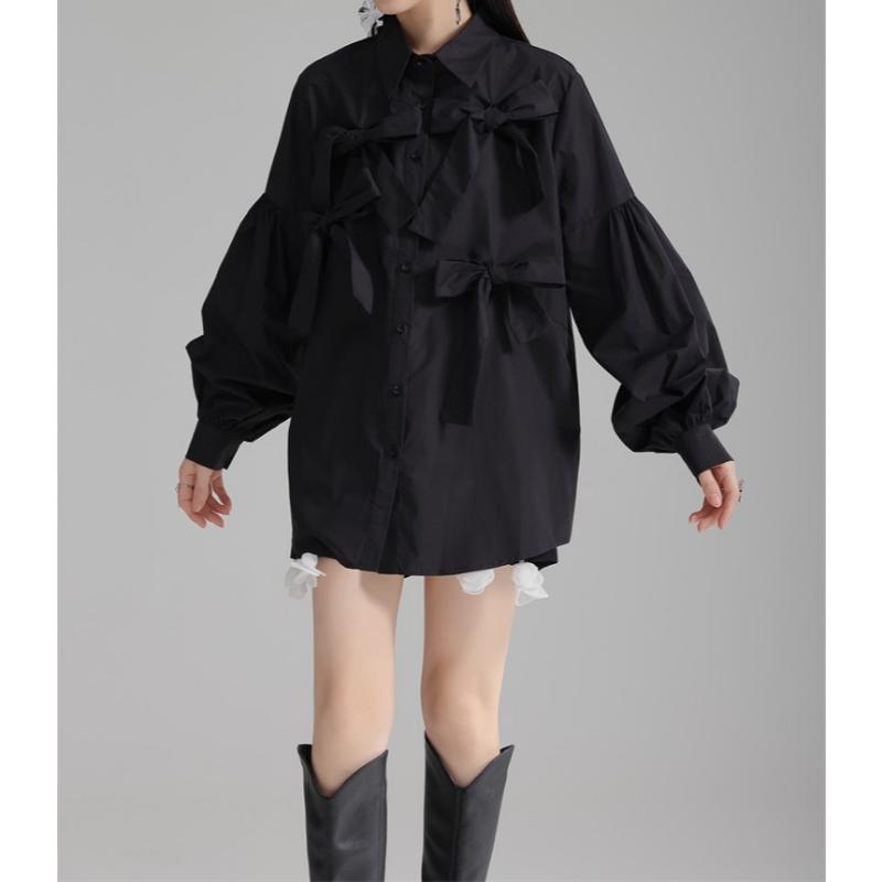 girly elegant ribbon shirt 【2color】0591
