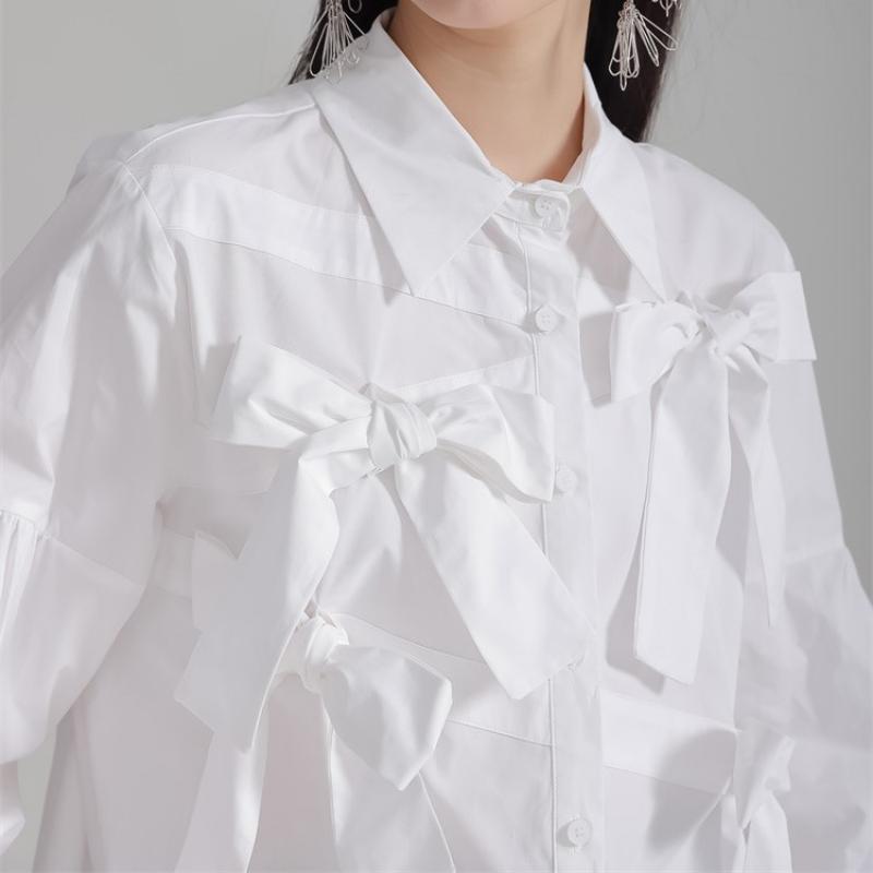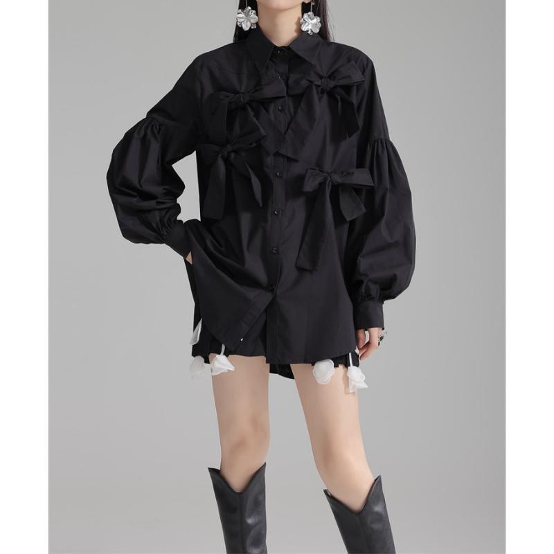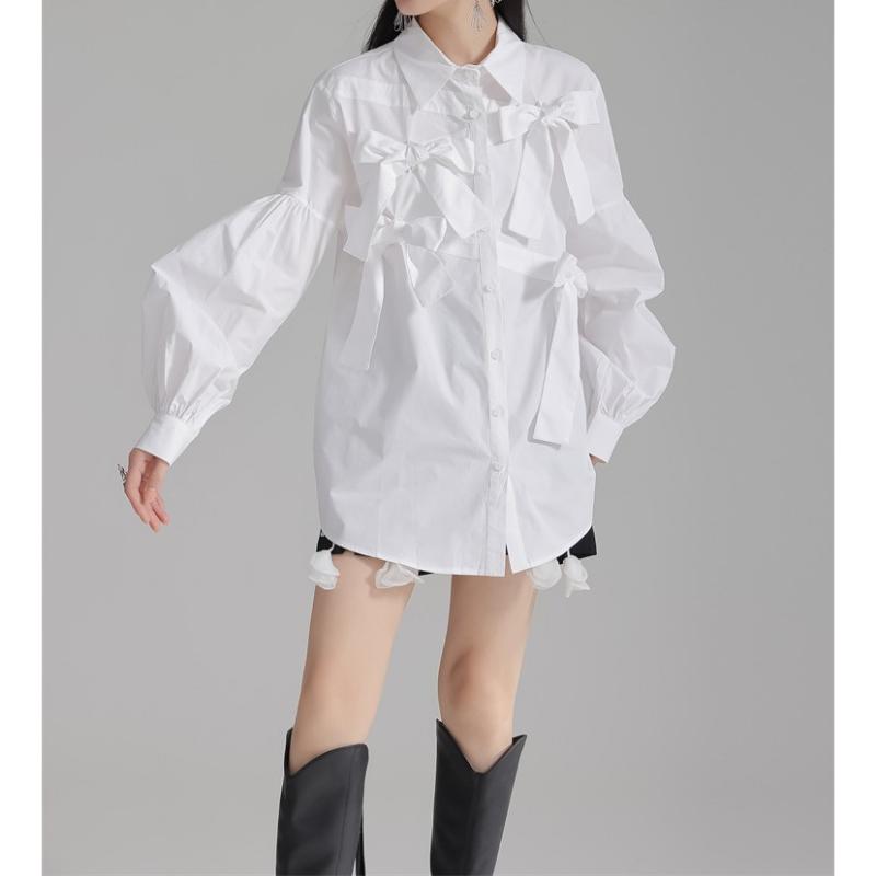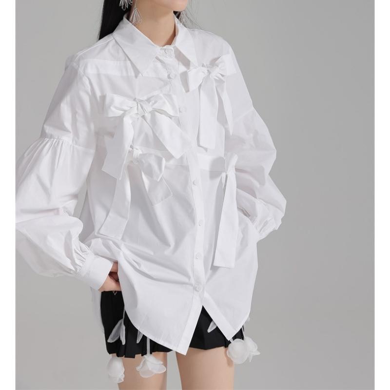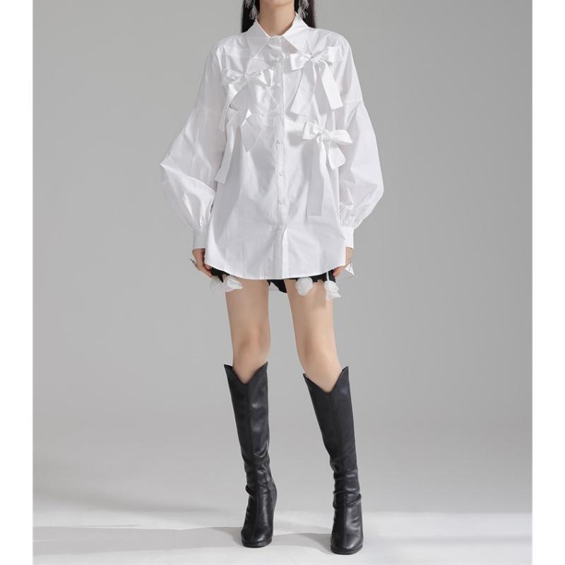 girly elegant ribbon shirt 【2color】0591