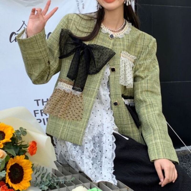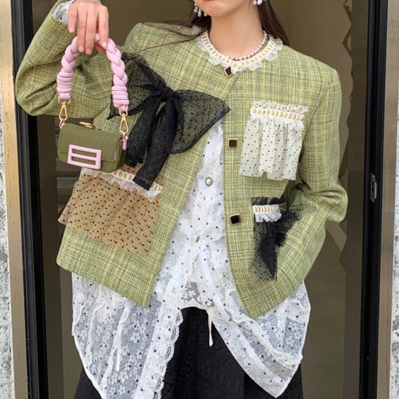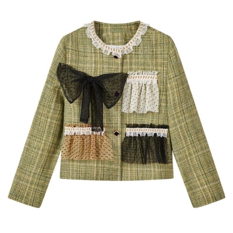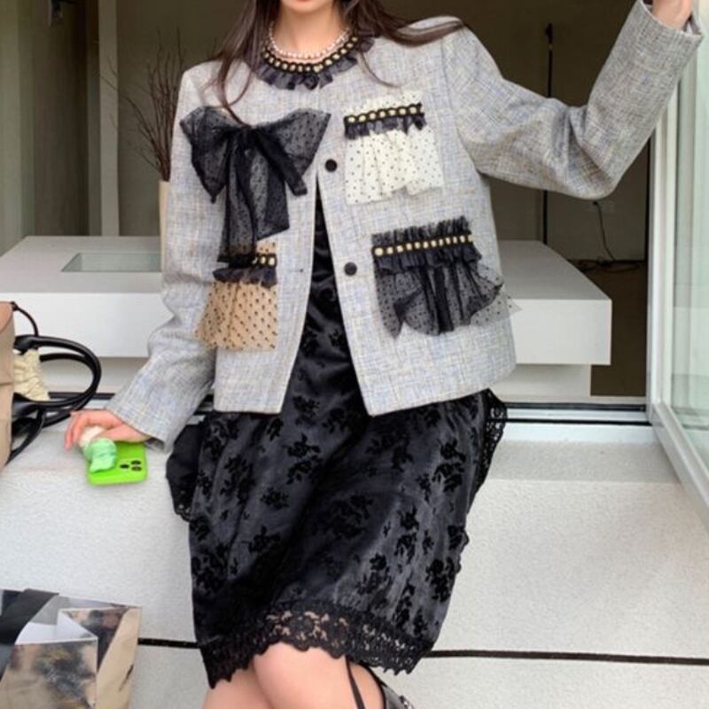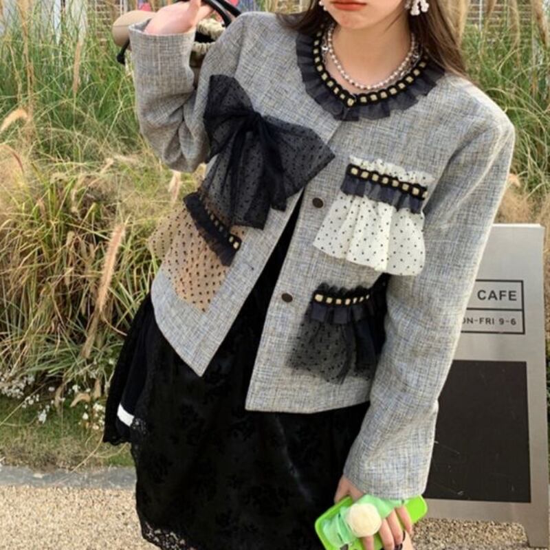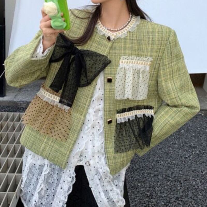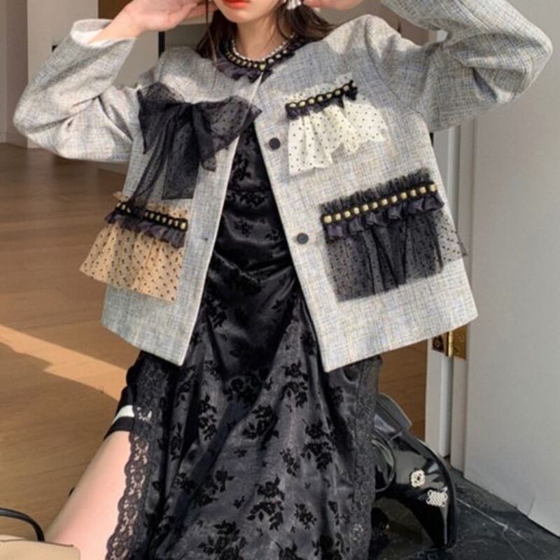 クラシカルなシルエットにキュートなレースフリルリボンがついたジャケット✨