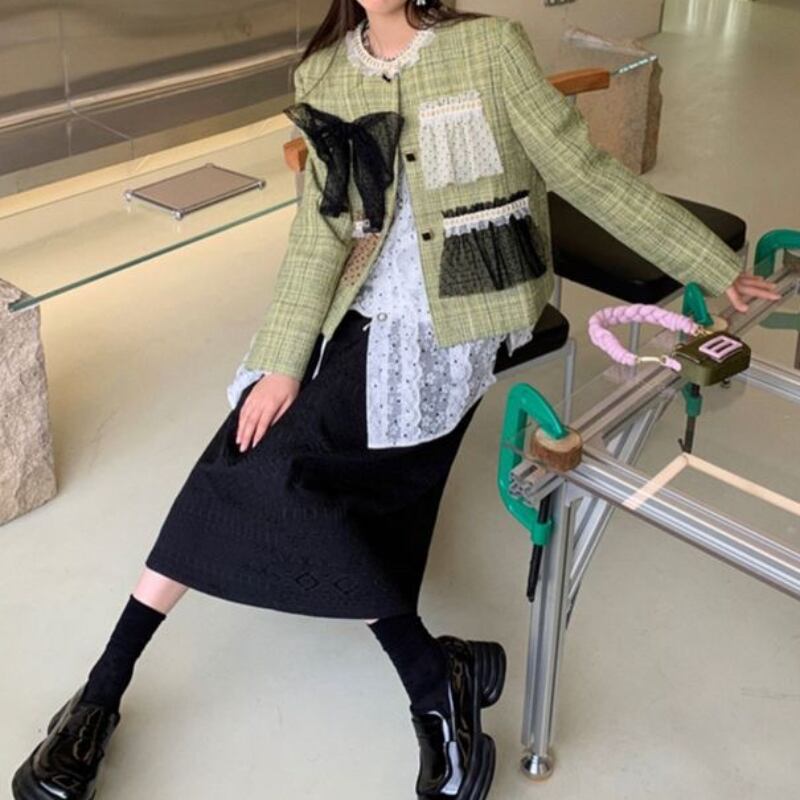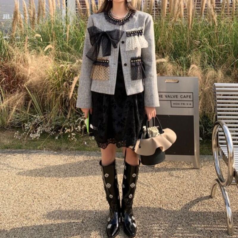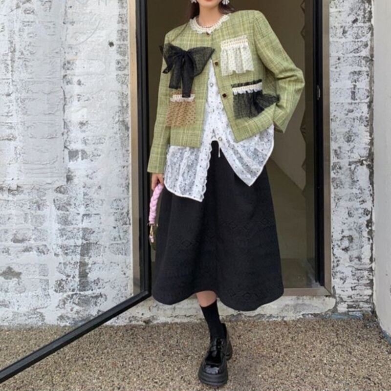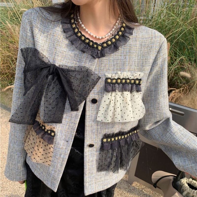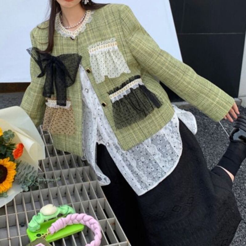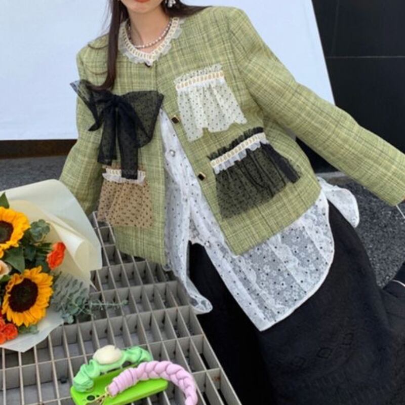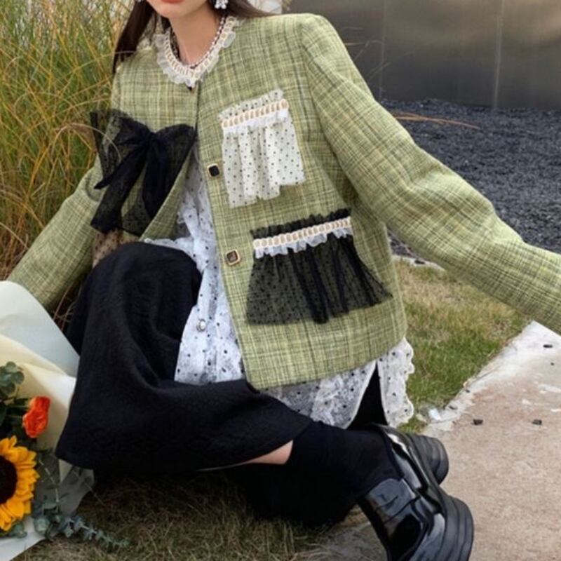 クラシカルなシルエットにキュートなレースフリルリボンがついたジャケット✨