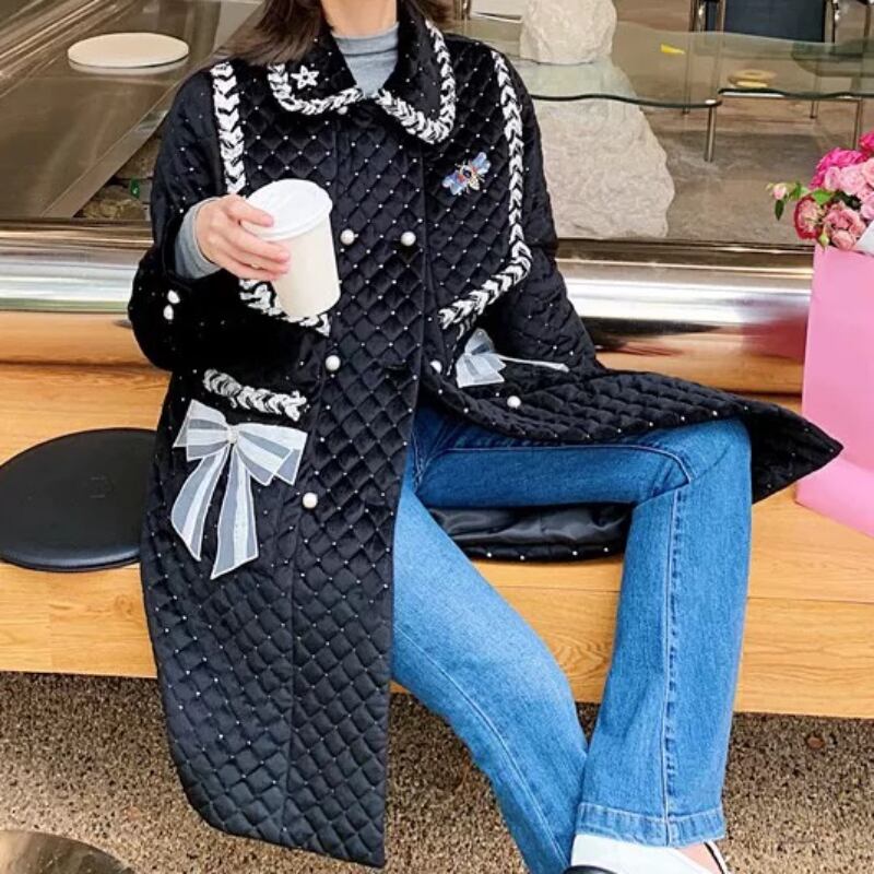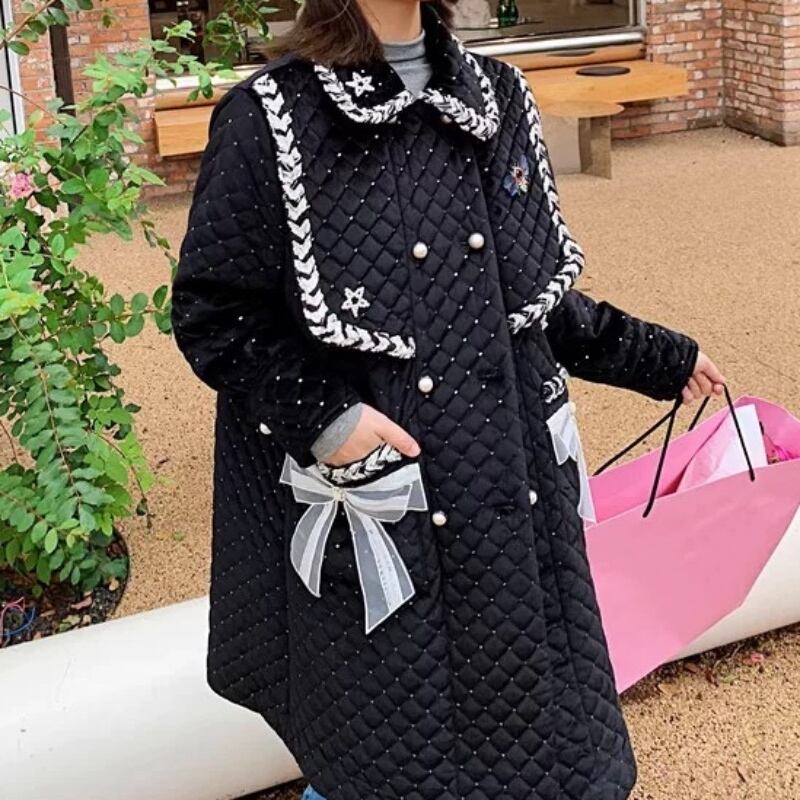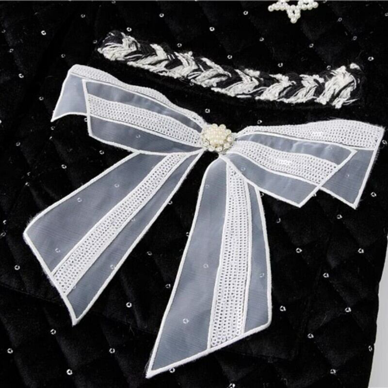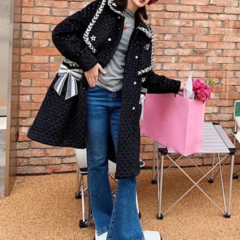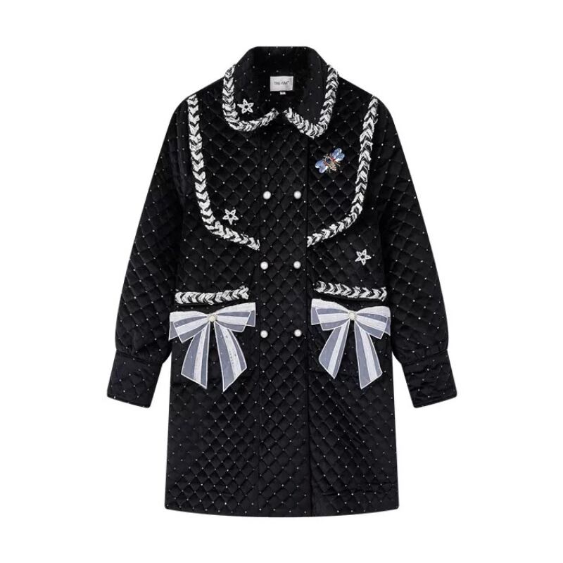 レトロ可愛いリボンとキラキラした蜂がアクセントの黒コート✨