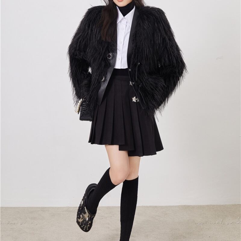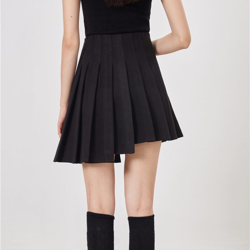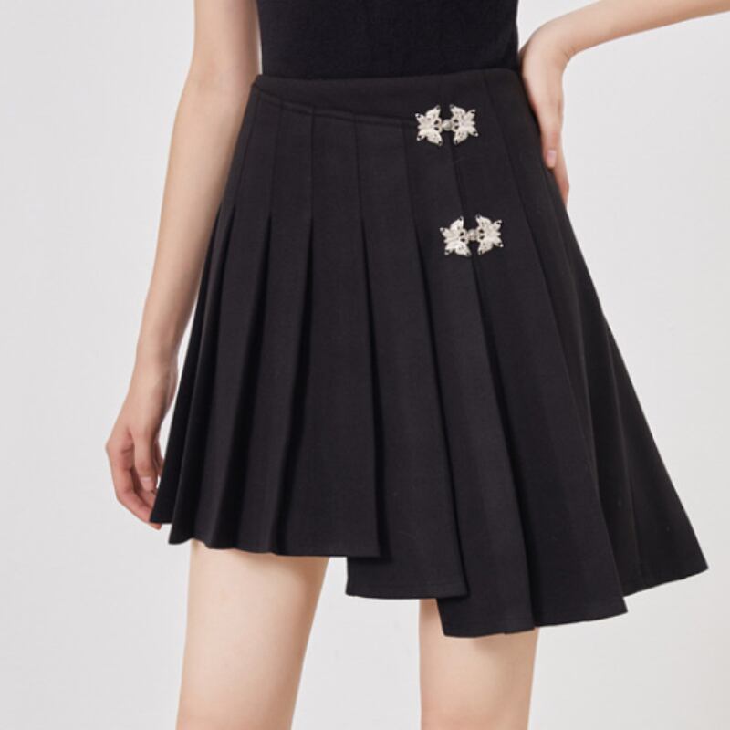 girly retro asymmetric pleated black butterfly button short skirt 0720