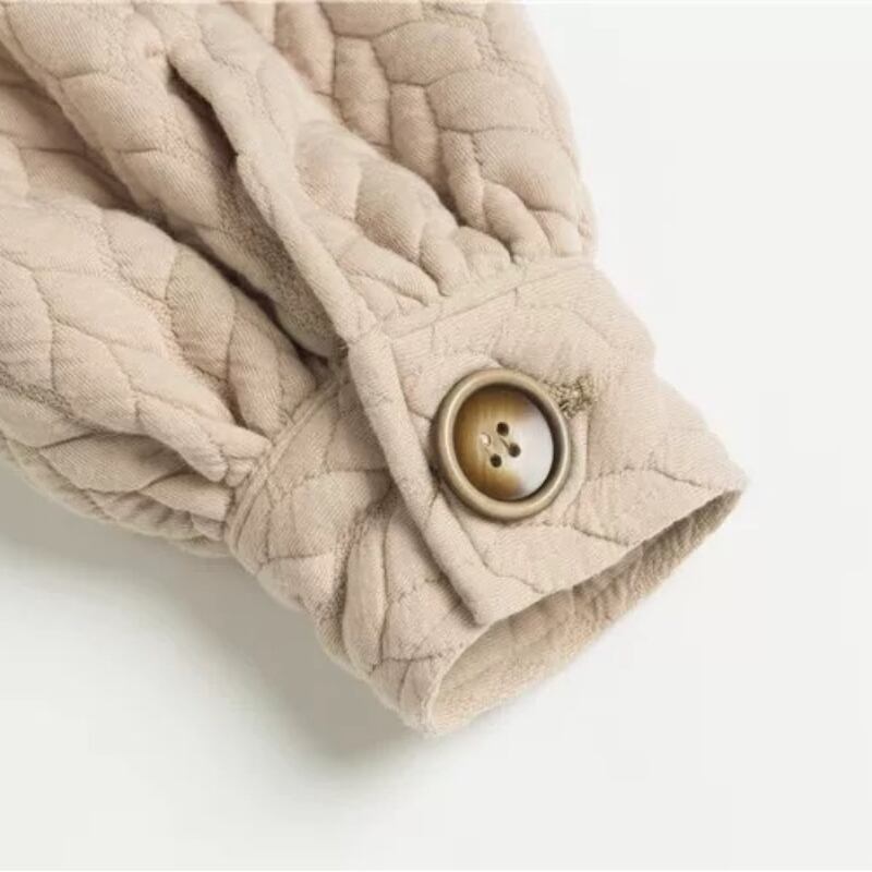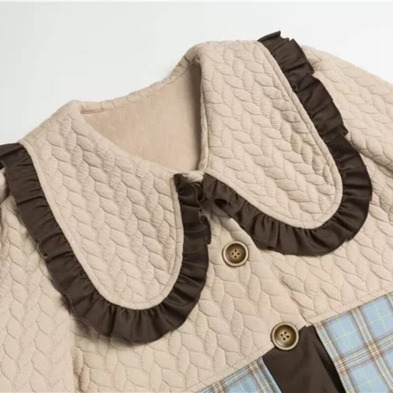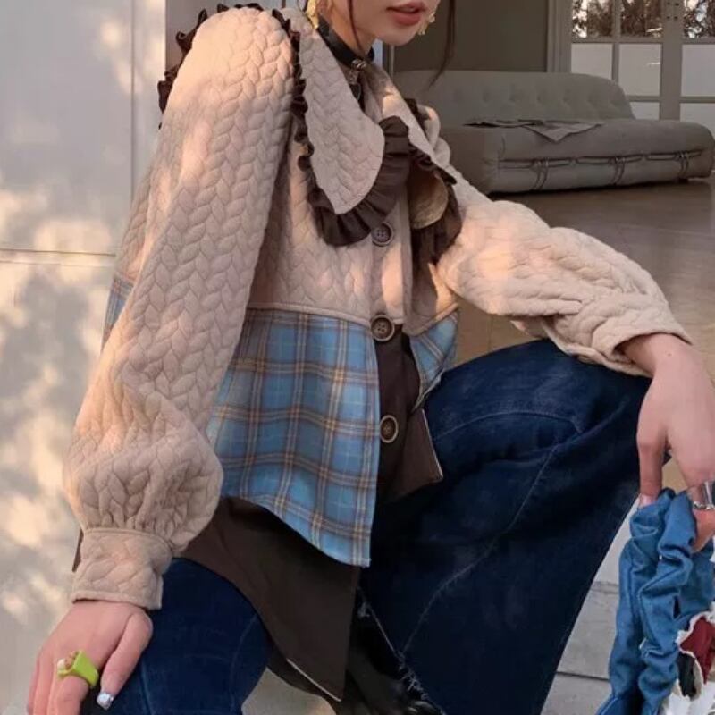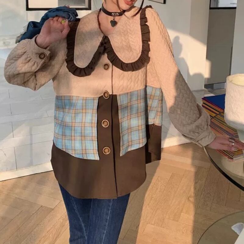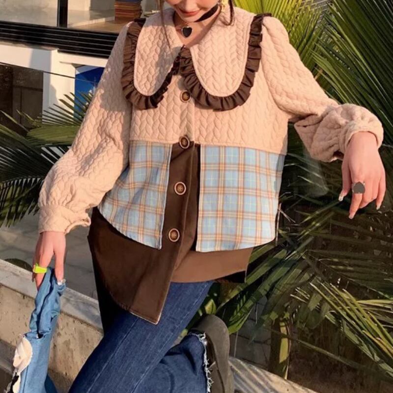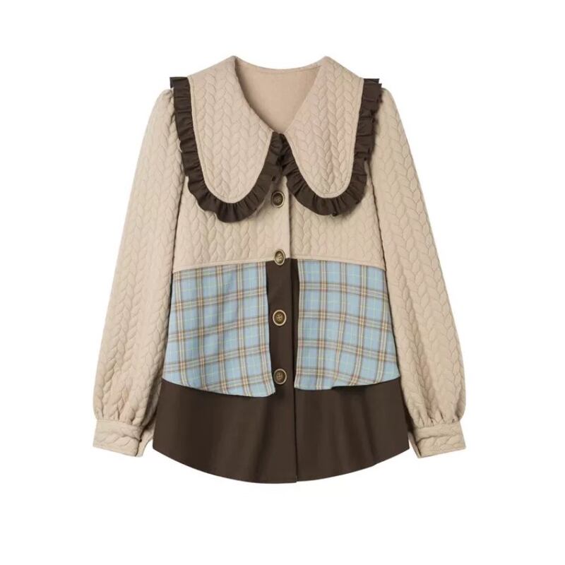 大きな襟とレトロな雰囲気のデザインが可愛い♡パッチワーク風ブラウス✨
