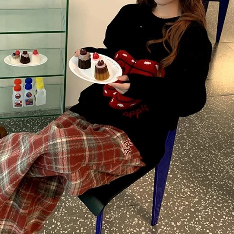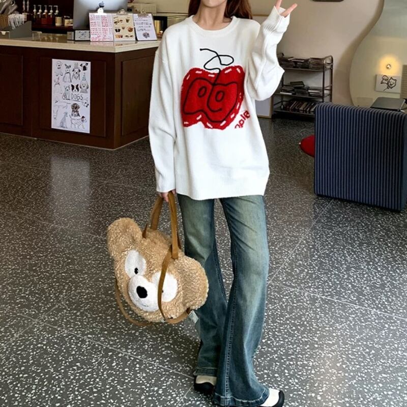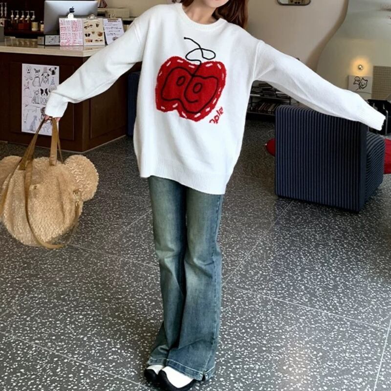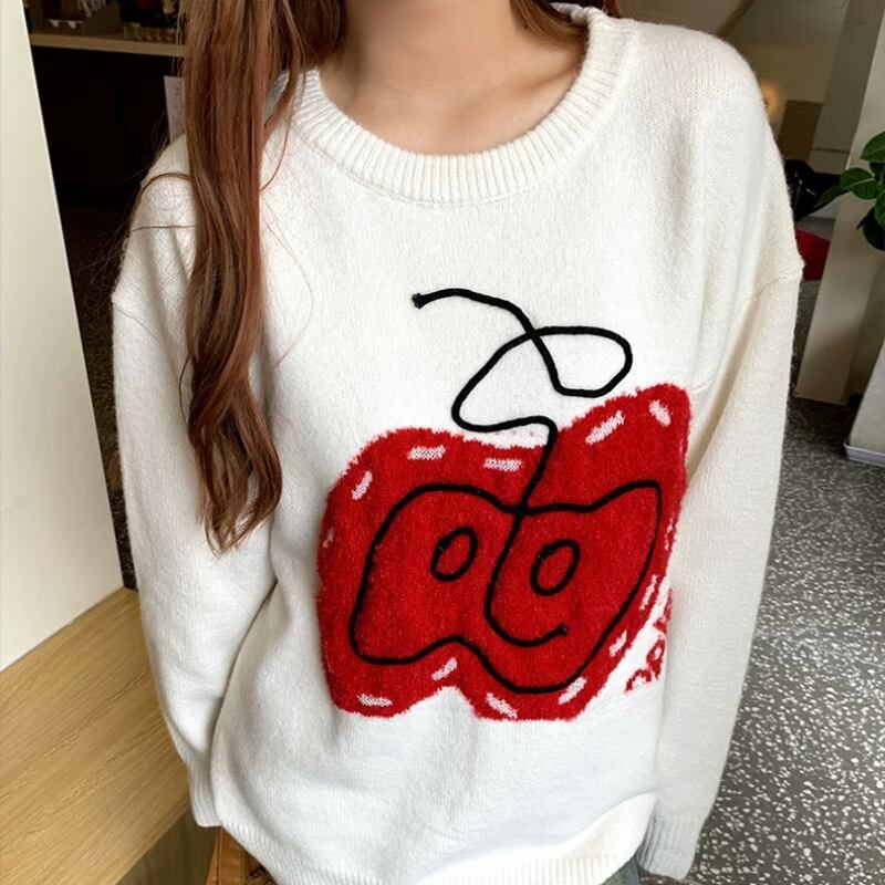 girly cute big apple round neck knit tops 【2color】 0750