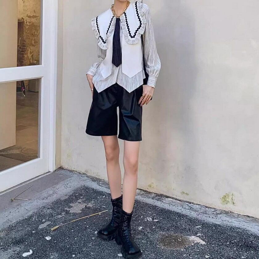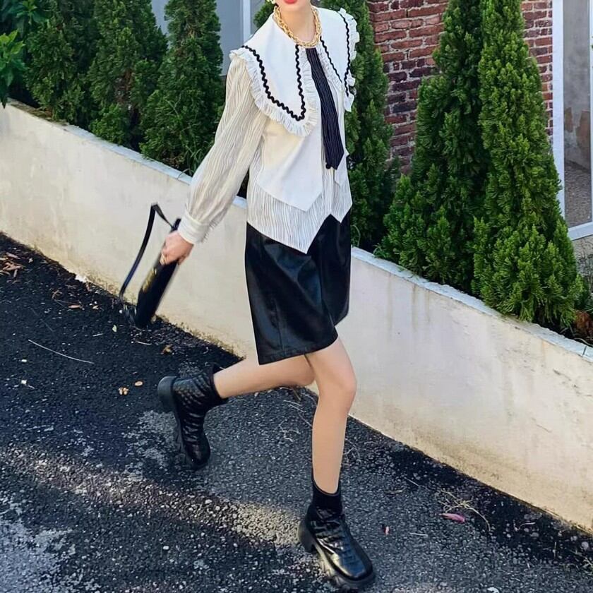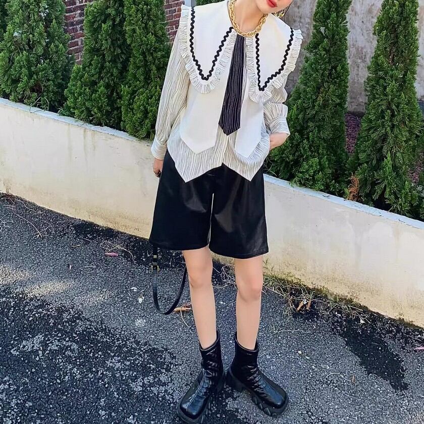 キュートな大きな襟におしゃれなネクタイがついたブラウス✨