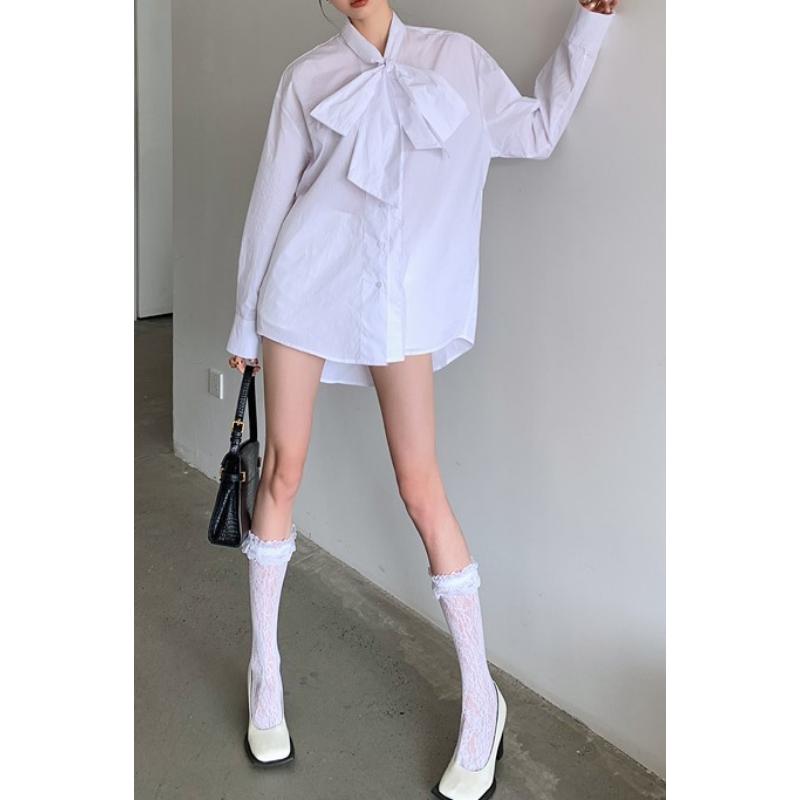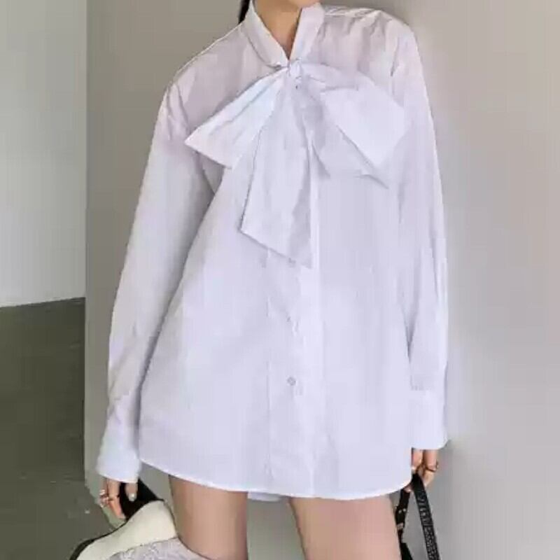 retro girly big ribbon bow oversize white shirt 0802