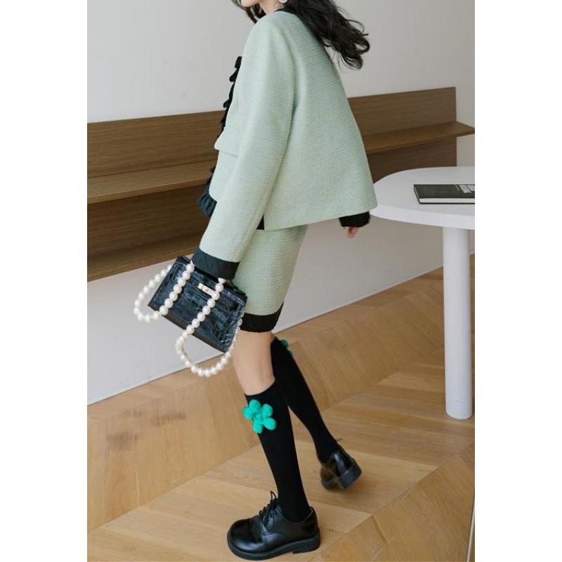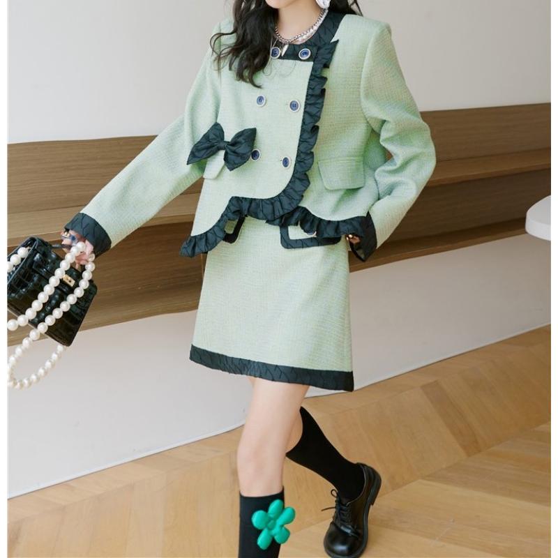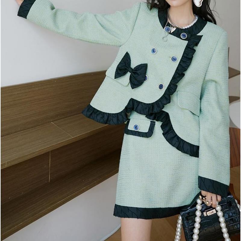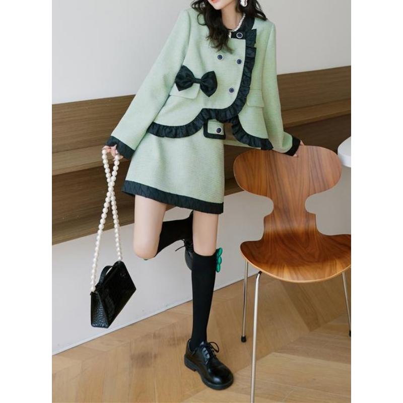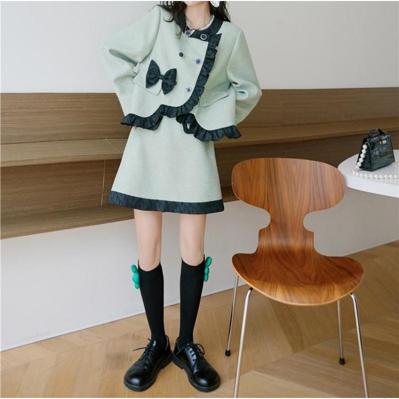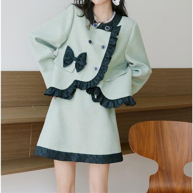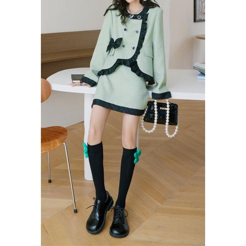 girly retro ribbon mint green frill jacket 0513
