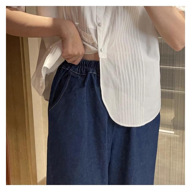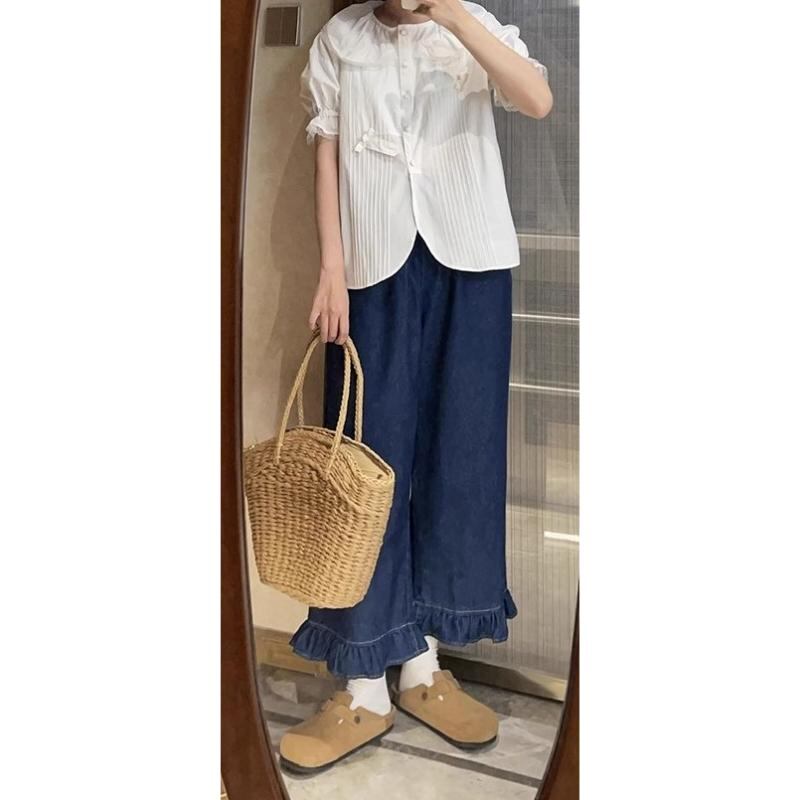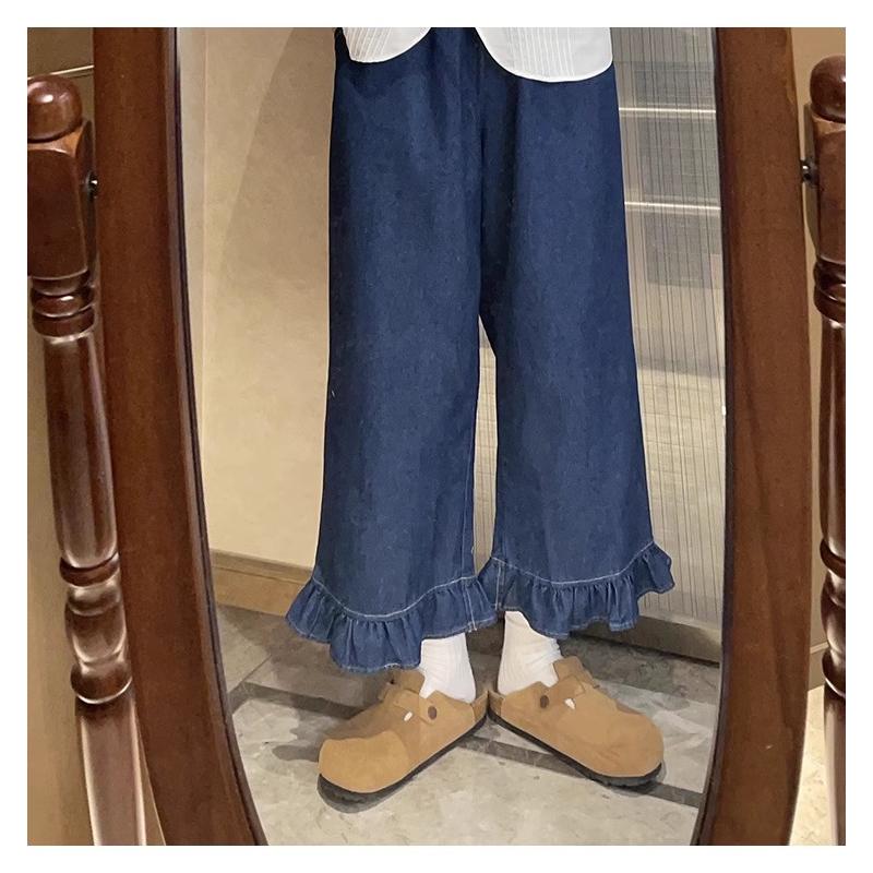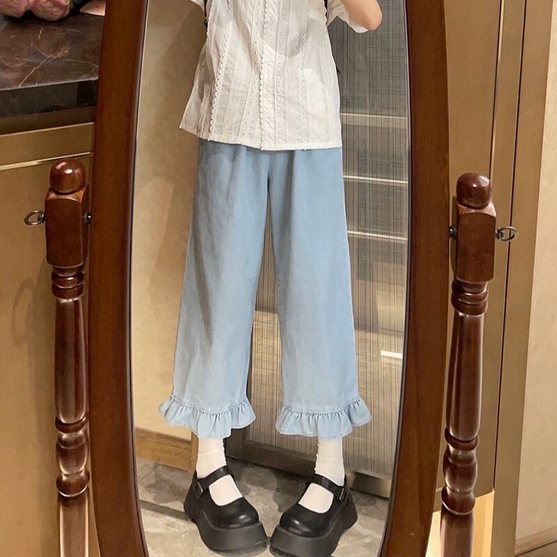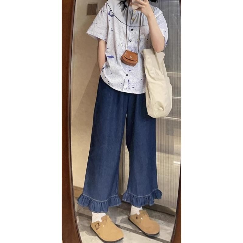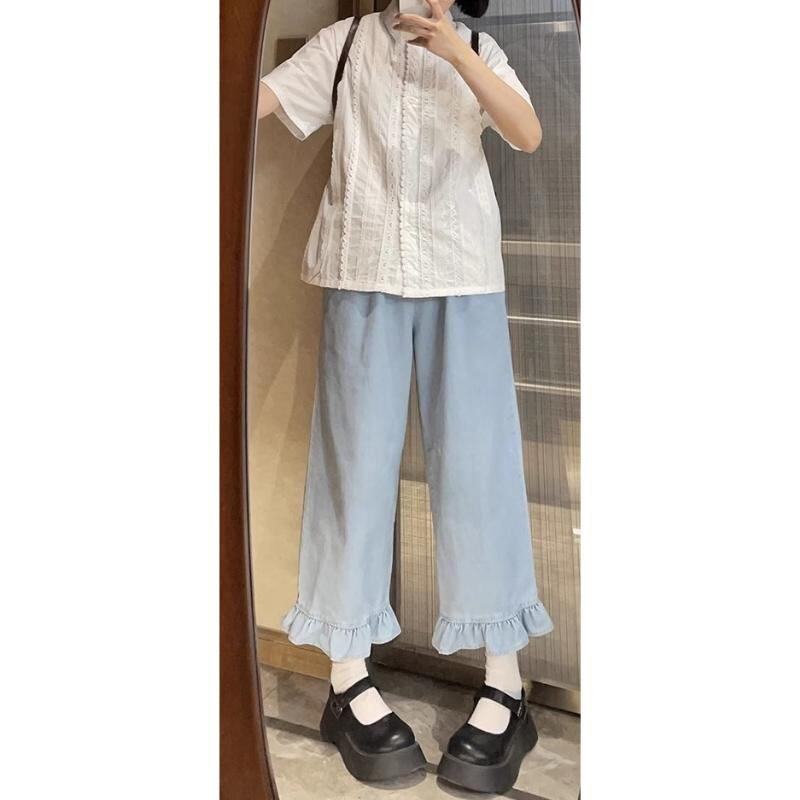 cute girly edge wide leg denim pants plus size clothing 【2color】0776