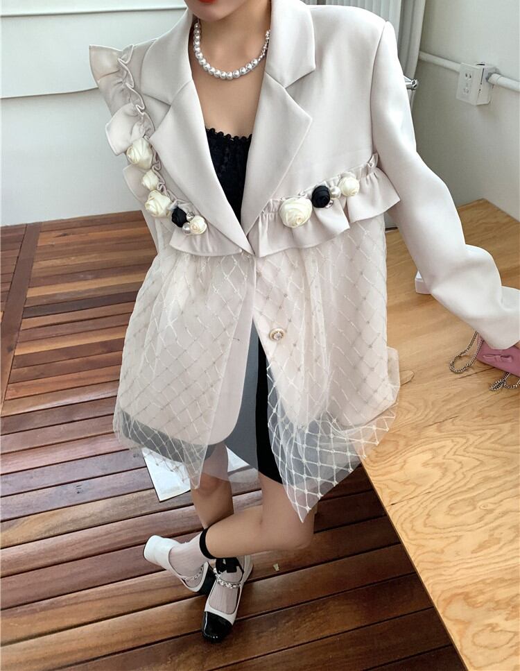 スイートで華やかな花とレースデザインのジャケット✨