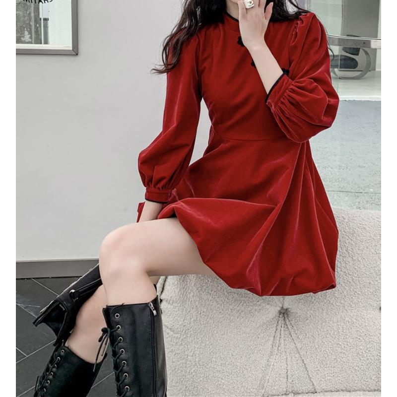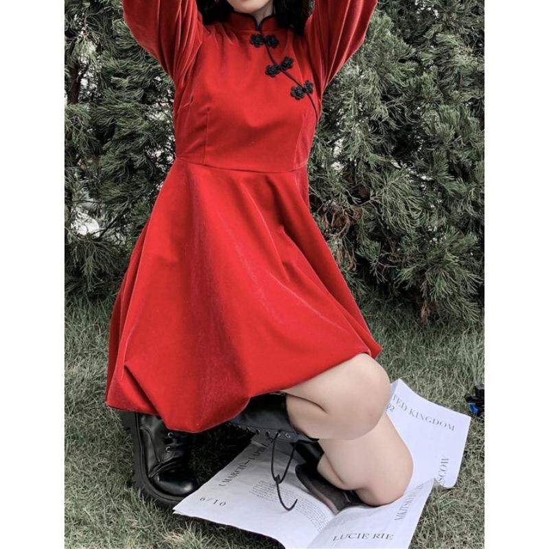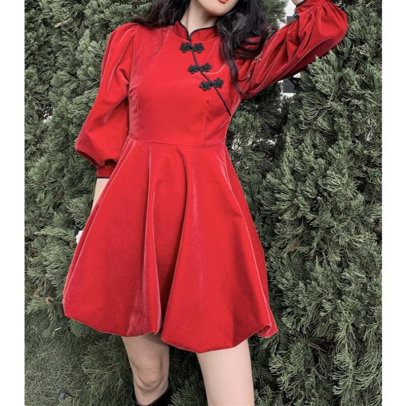 ふんわりパフスリーブにふんわりスカートのおしゃれなガーリー系チャイナワンピース✨