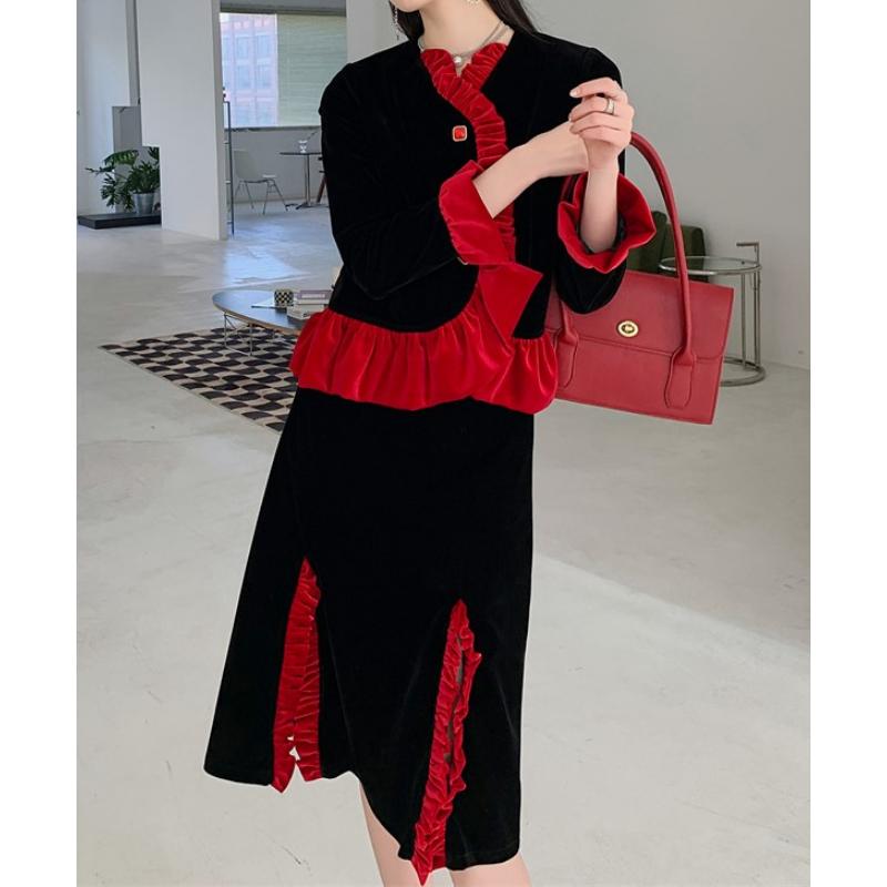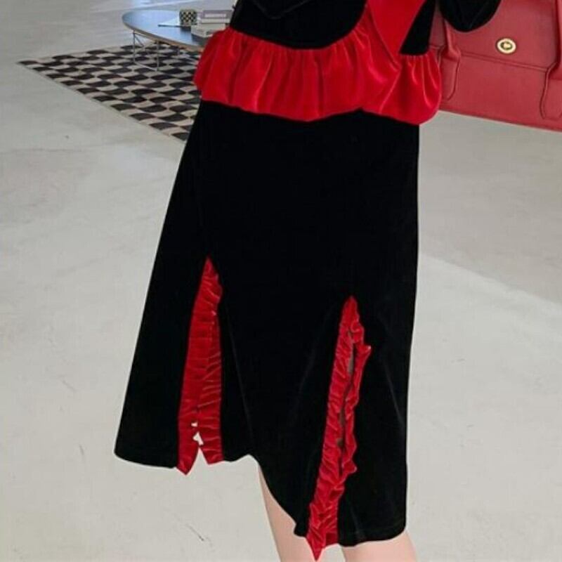 happy Christmas & New Year party red and black suit velvet skirt 0642