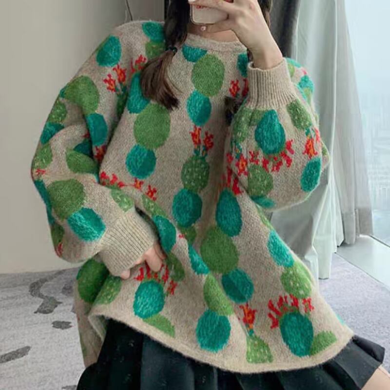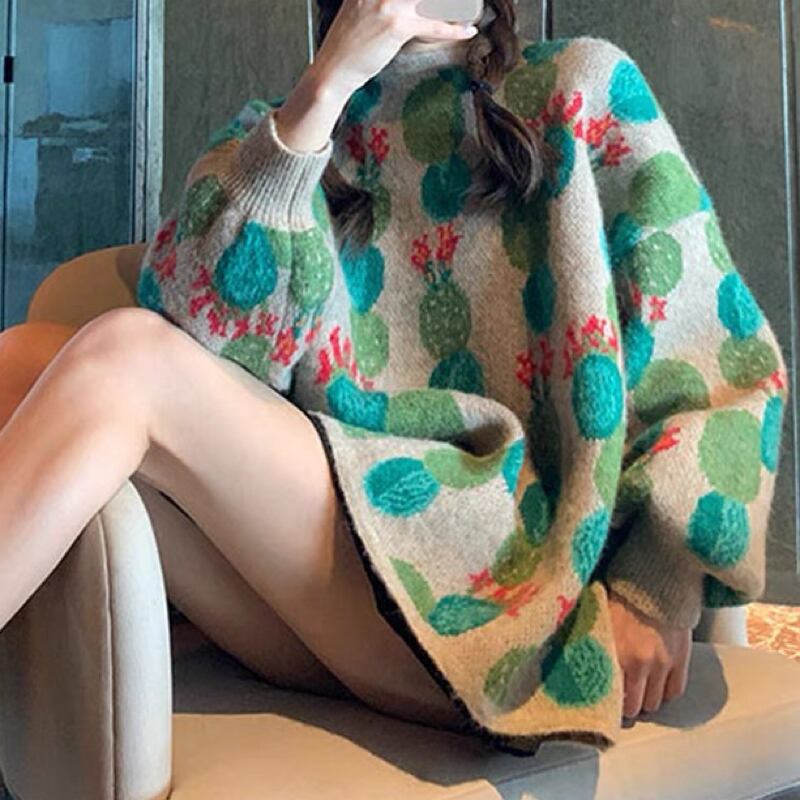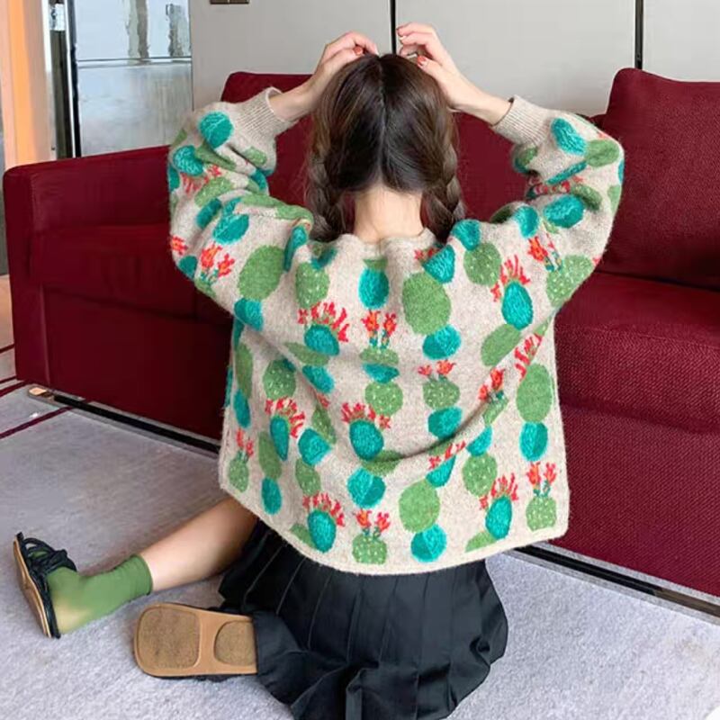 cute cactus flower unique design knitted sweater 0856
