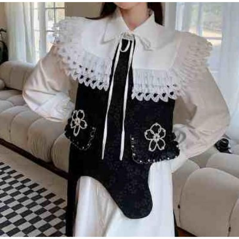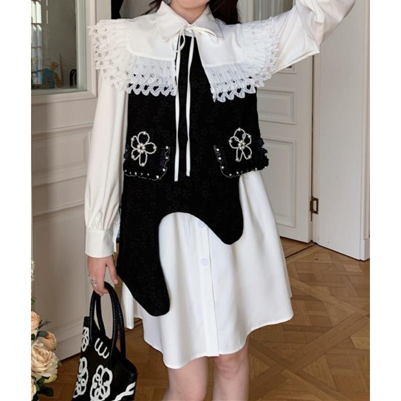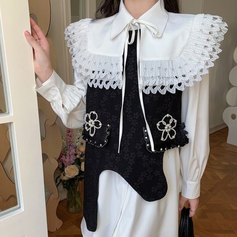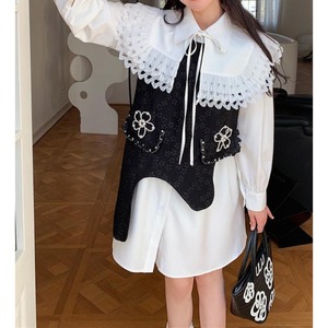 girly cute flower and asymmetry jacquard niche design vest 0649