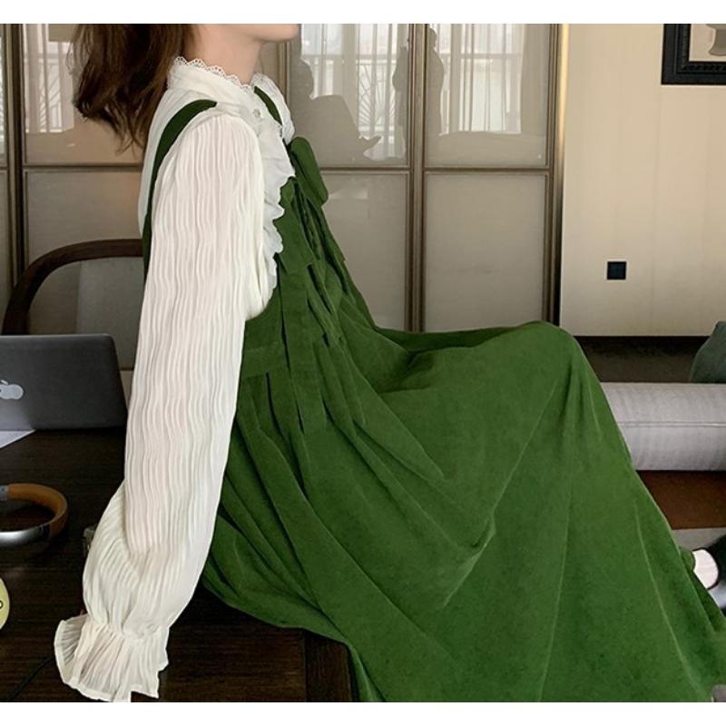 girly retro white shirt and suspender skirt 0689