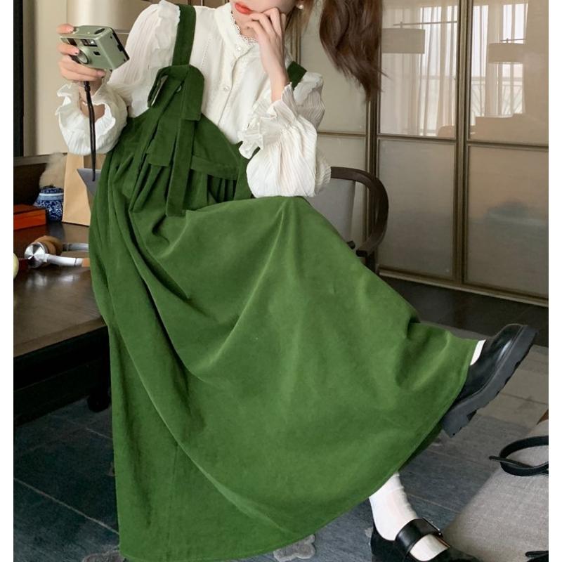 まるでレトロな洋館から出てきそうな素敵なブラウスとサスペンダースカート✨