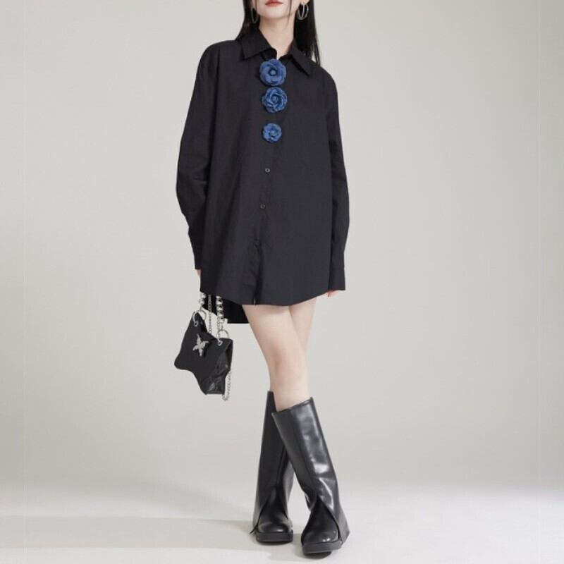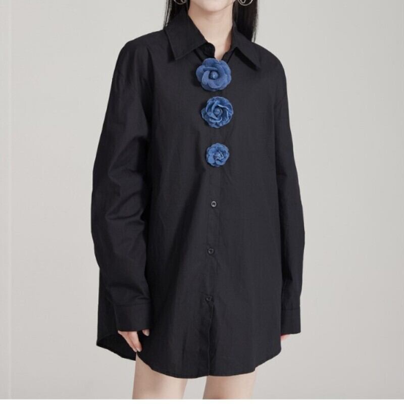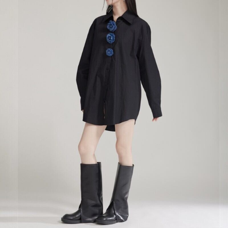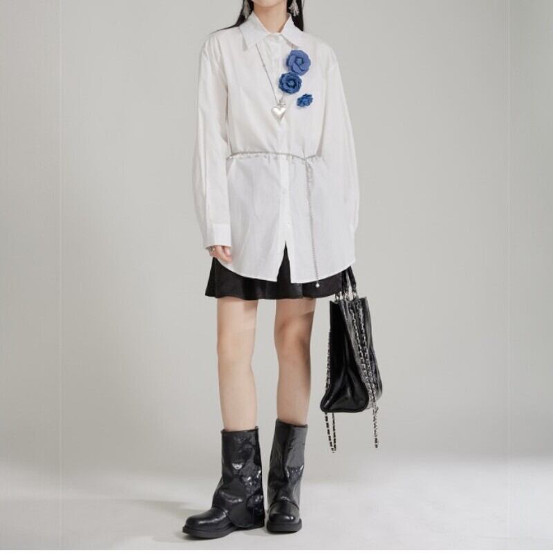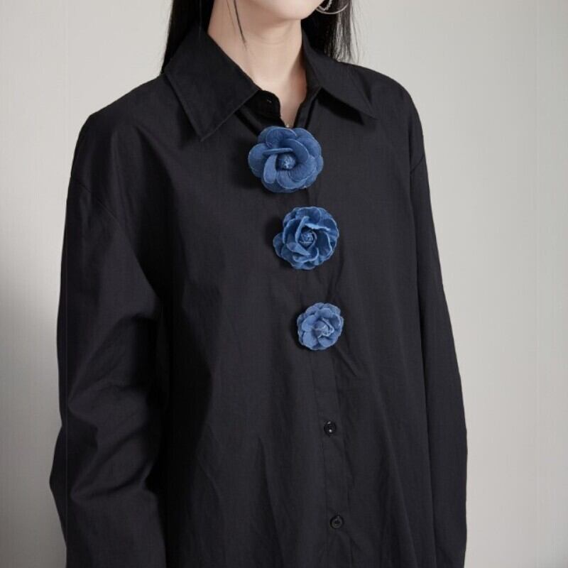 胸の花が可愛いアクセント♡のおしゃれなブラウス✨