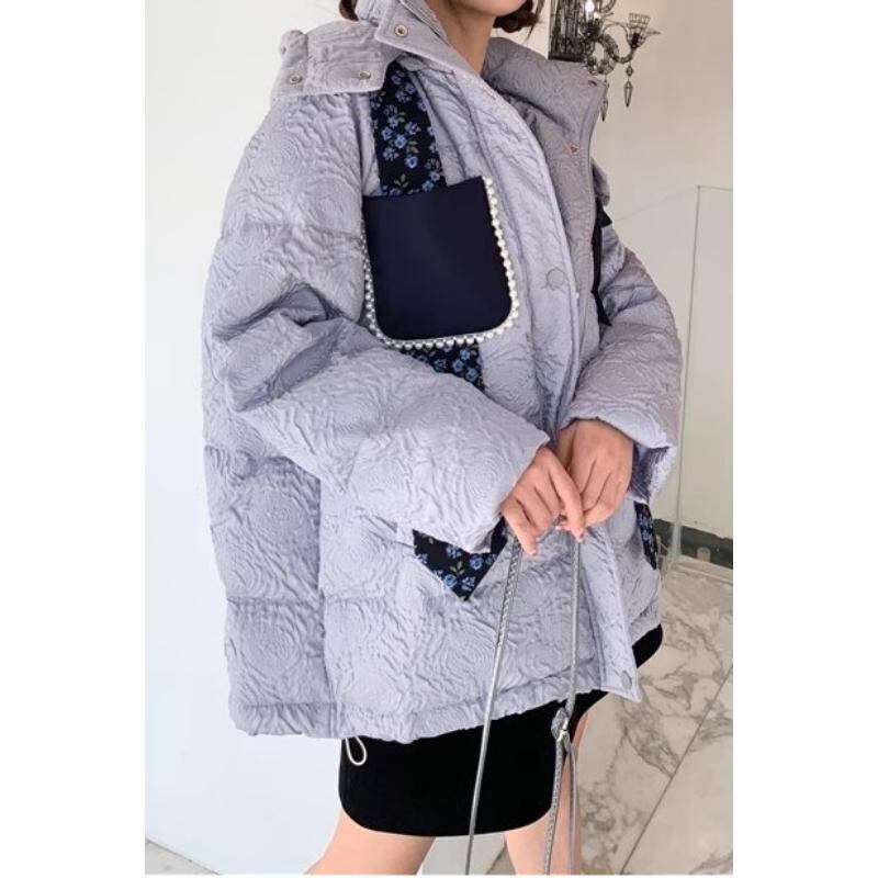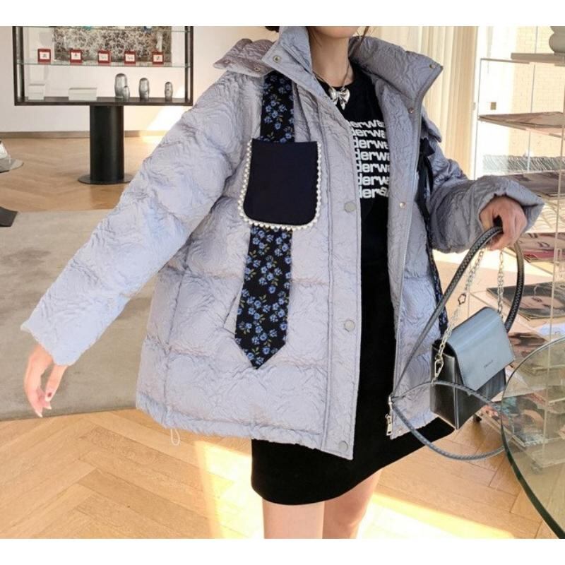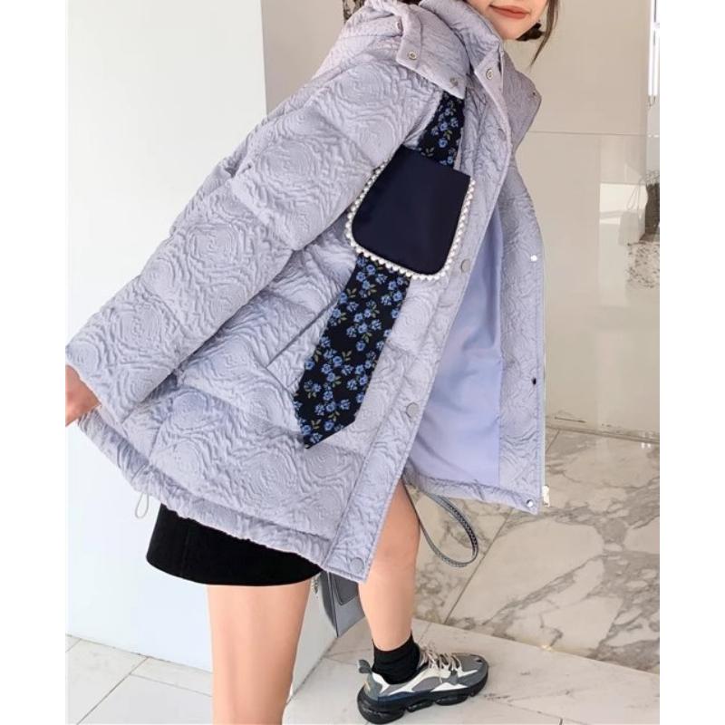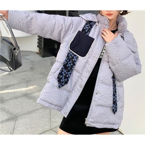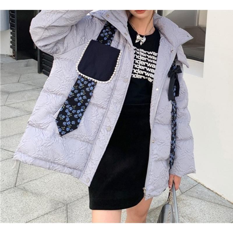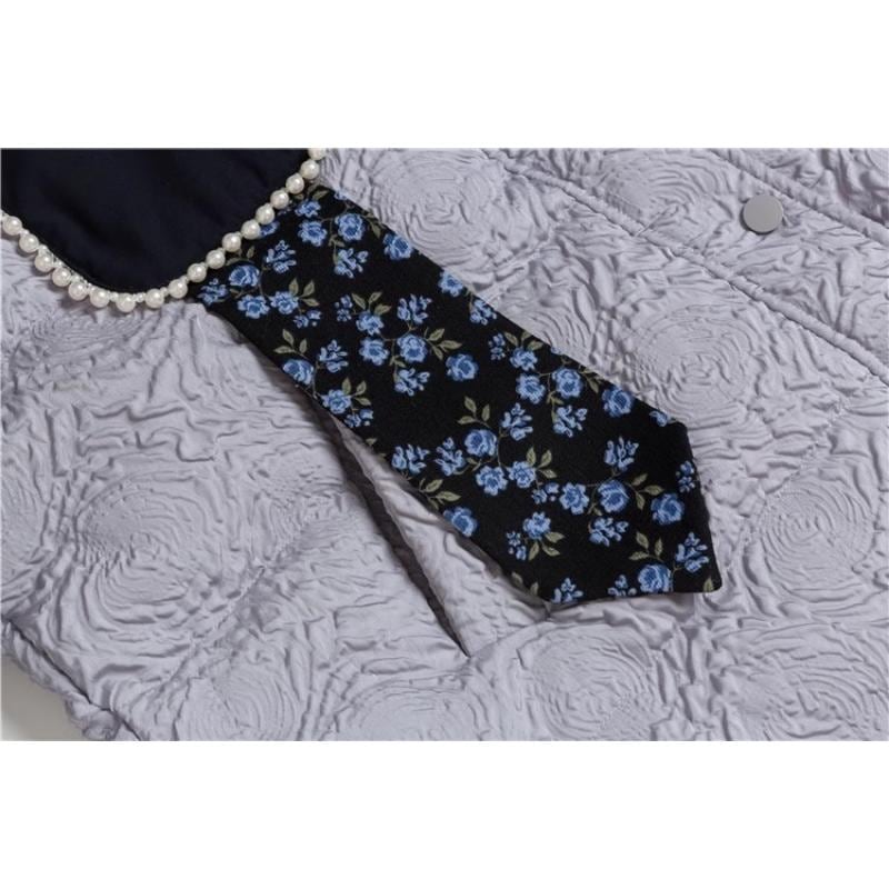 レトロな花柄のタイとリボンがついたおしゃれなコート✨